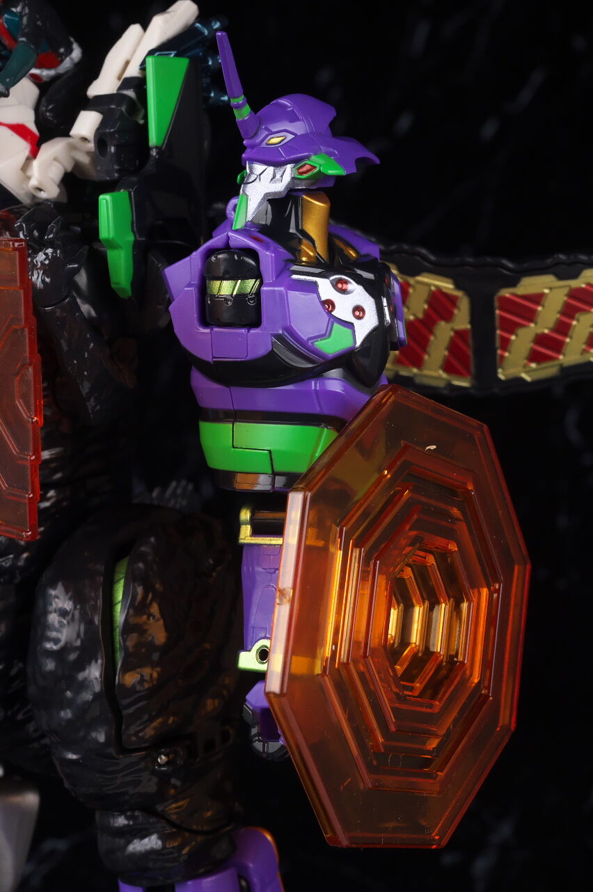エヴァンゲリオン初号機。オリジナルに比べると体型にメリハリがないですが、こちらもそこそこは原型を保てていて色も細かく再現されてました。