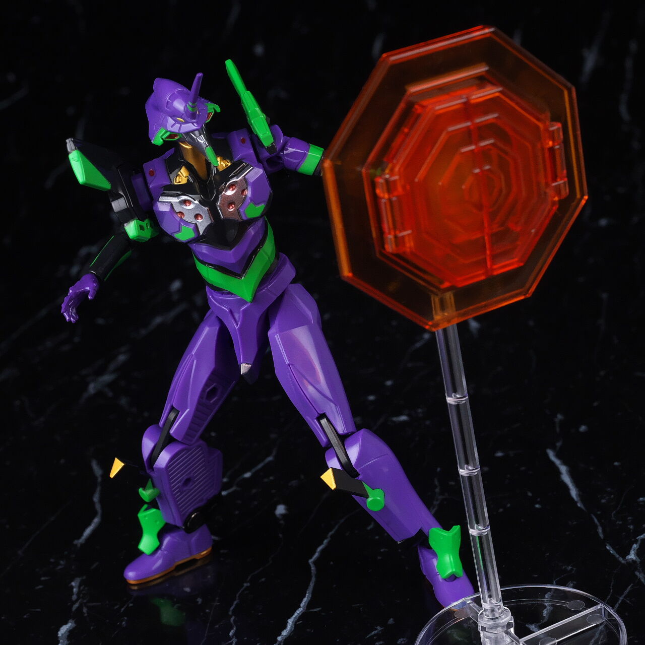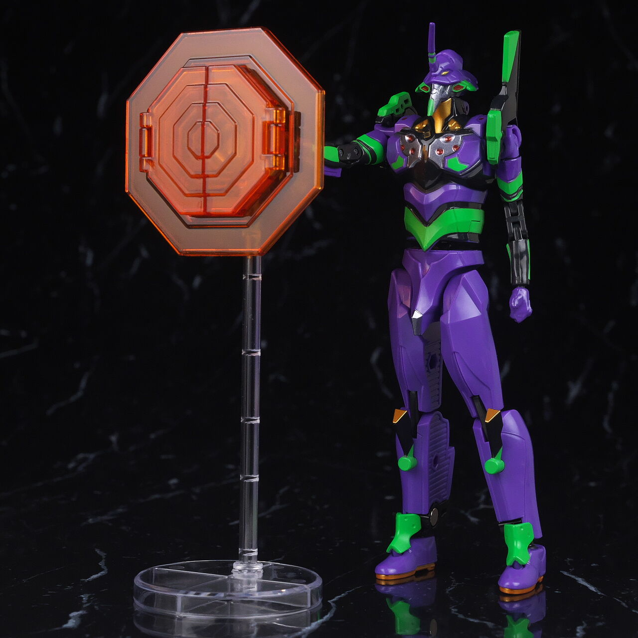 初号機用のATフィールドパーツが付属。こちらは専用の台座で展示。合体時にシールドとなるパーツ。