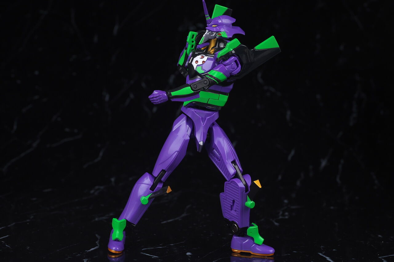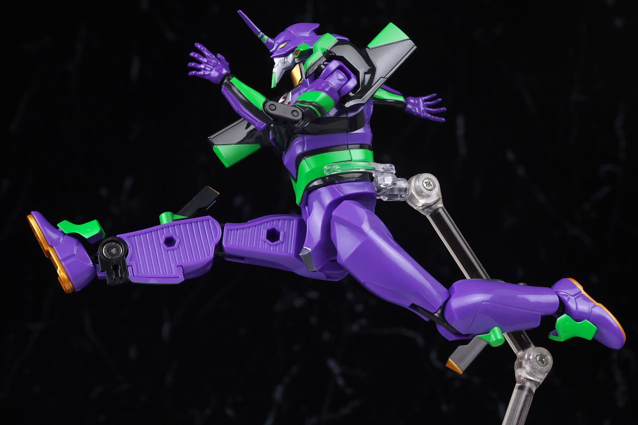 初号機もあまり動かないですが、手足が前後にはよく動くのでジャンプポーズはわりと自然に再現可能。