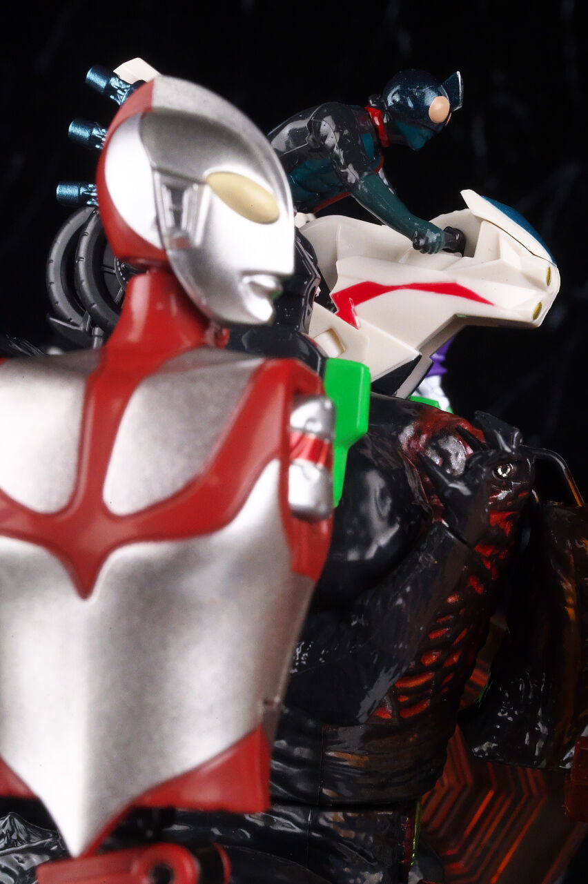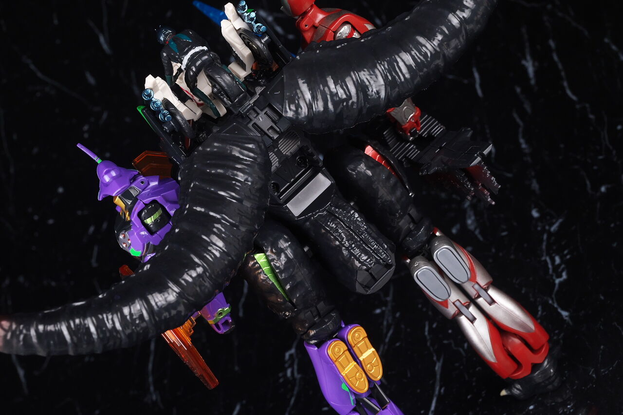 ウルトラマンも初号機と同じく、上半身と下半身を分離。背中パーツを展開。