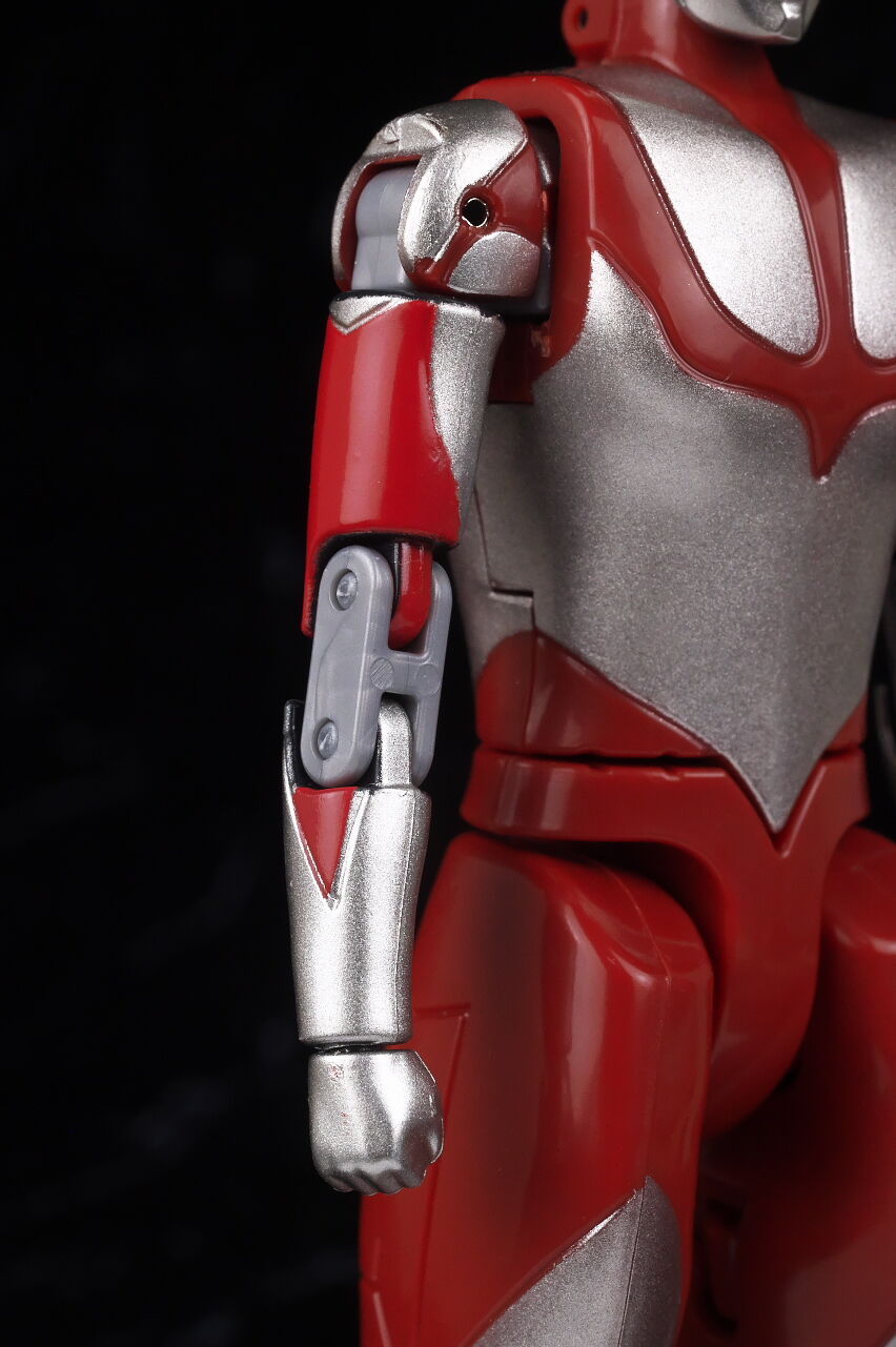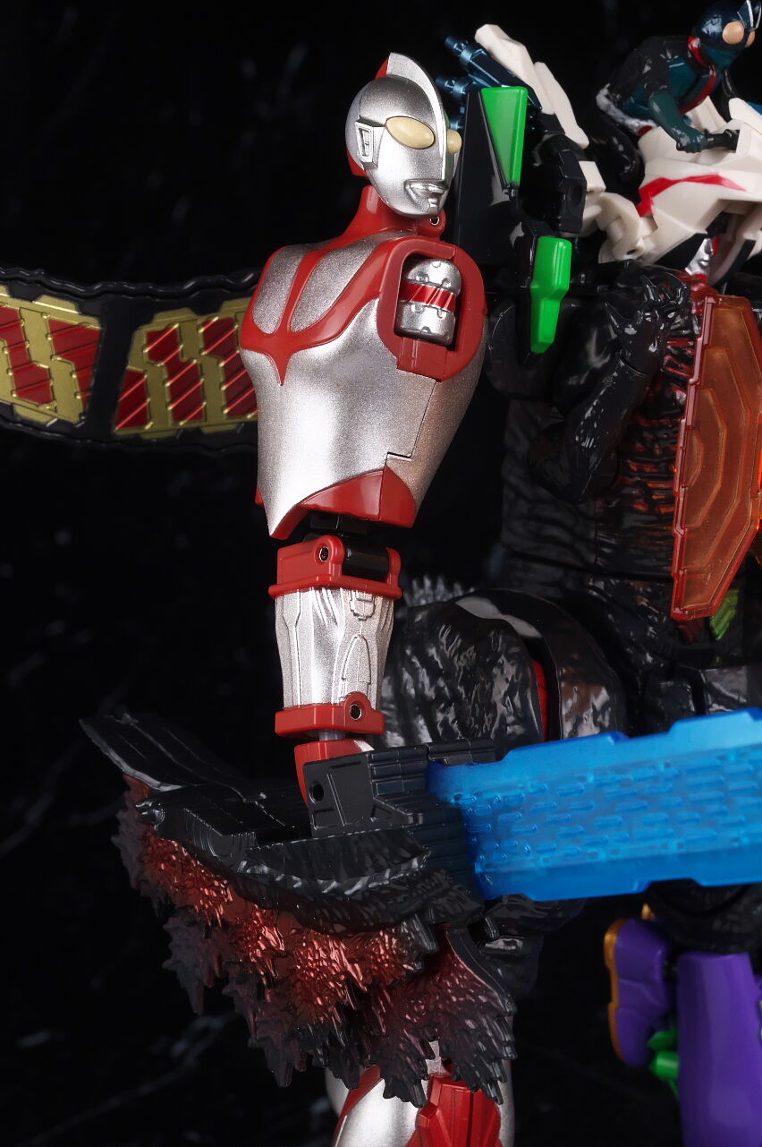腕や足。左腕と左足はウルトラマン、右腕と右足は仮面ライダーに。左腕にはATフィールドの盾を装備。