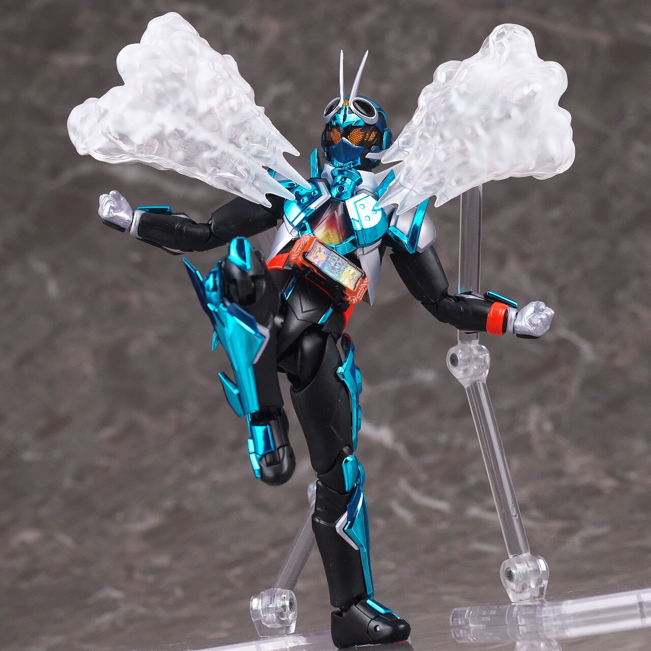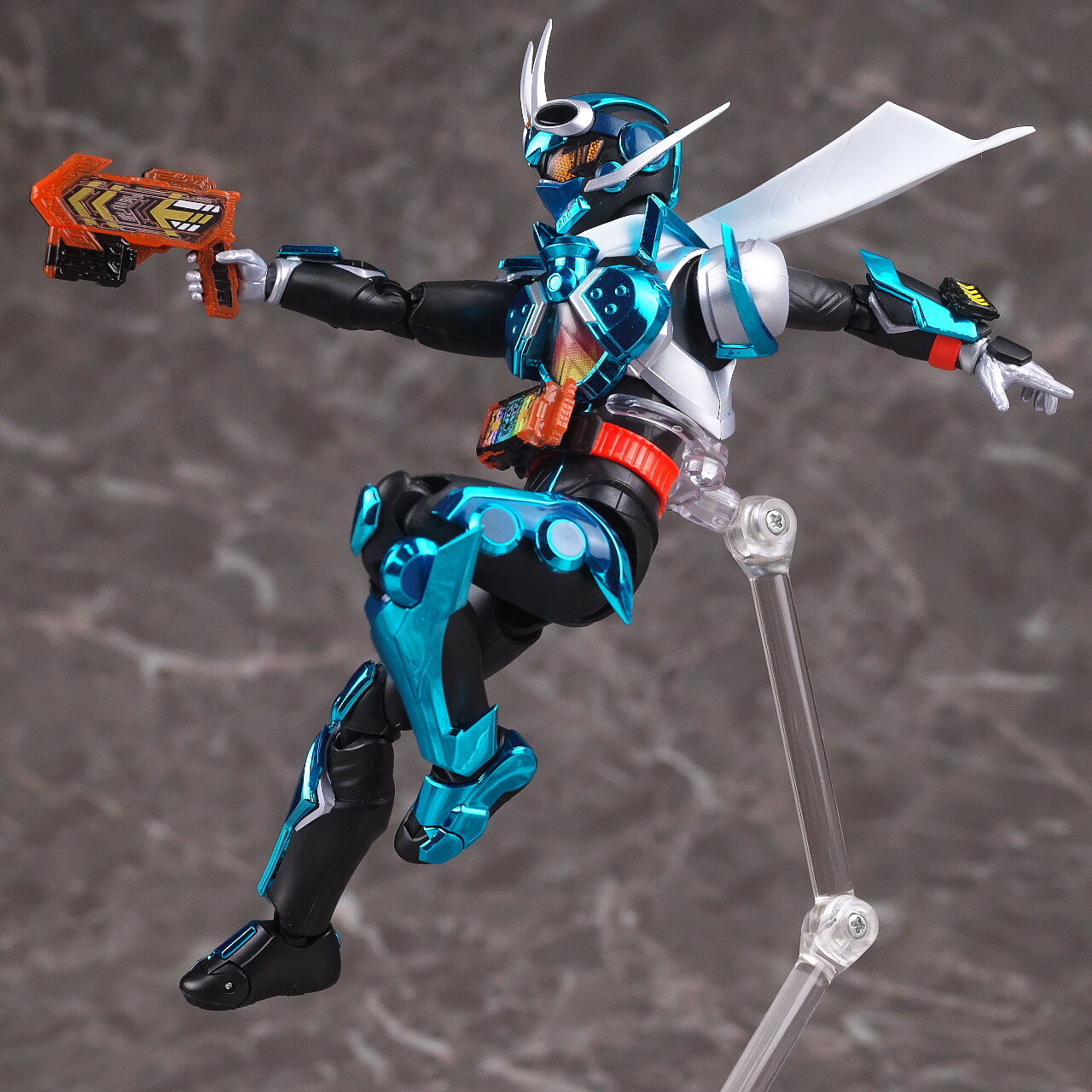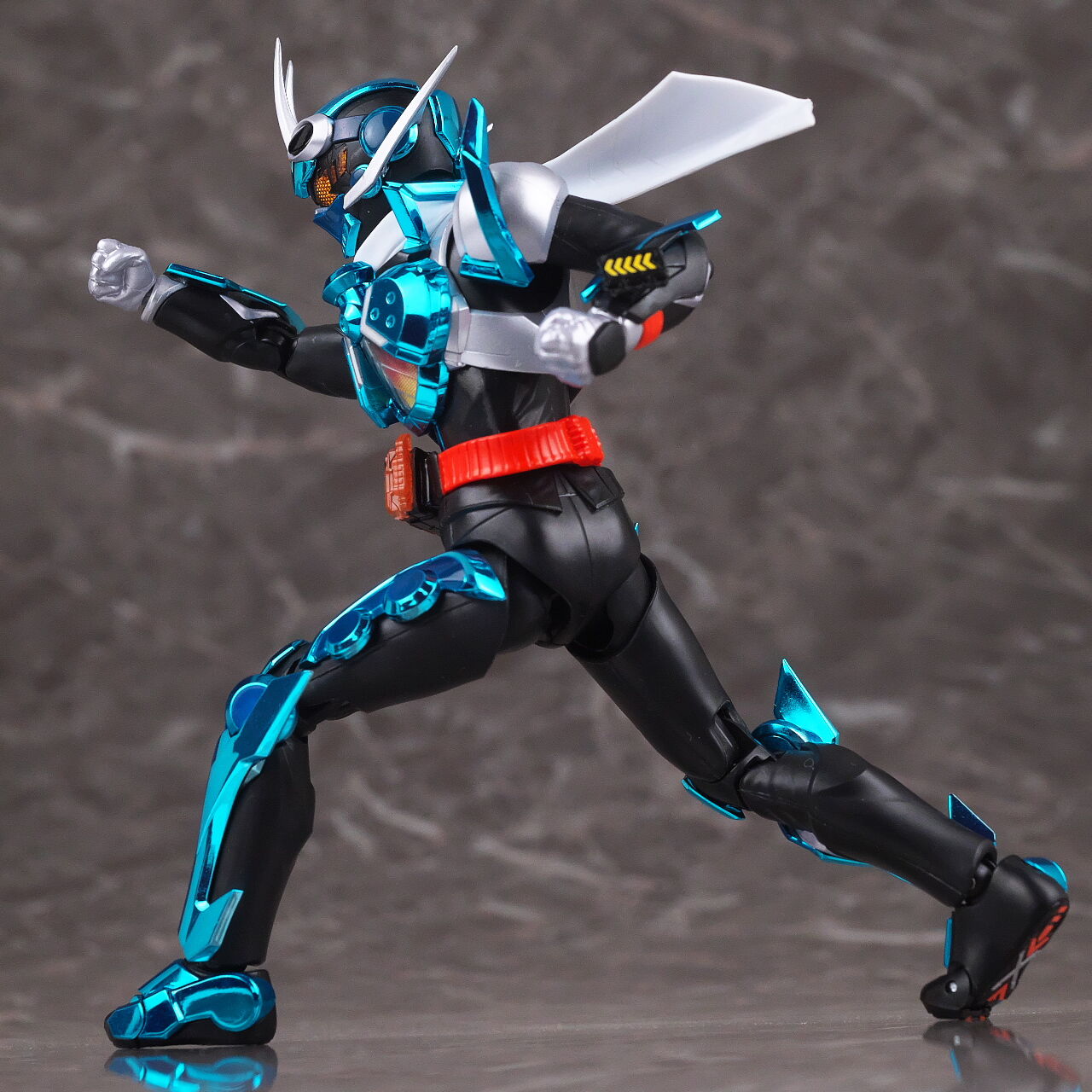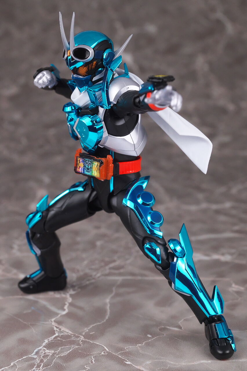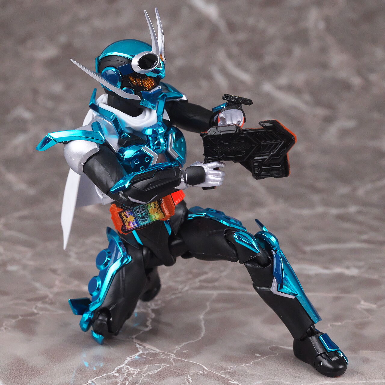 全身。プロポーションは最近のライダアーツ同様安定。今回は一番目立つ青部分がメッキになっており、メタリック塗装中心の従来の物とはかなり異なる雰囲気に仕上がってました。
