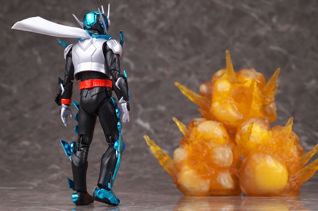 可動もマフラーの影響で首周りは少し窮屈ではあるものの、他は最近のライダーアーツ同様安定しており、カード関連のギミックが無い点も人によっては気になるかもしれないですが、個人的には特に問題なく、遊びの面に関してもそれほど大きな不満は無かったです。