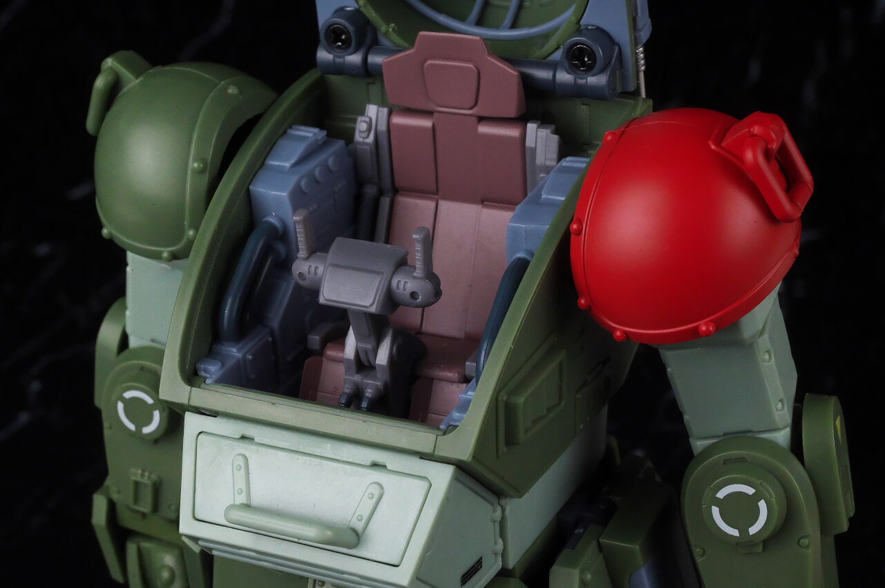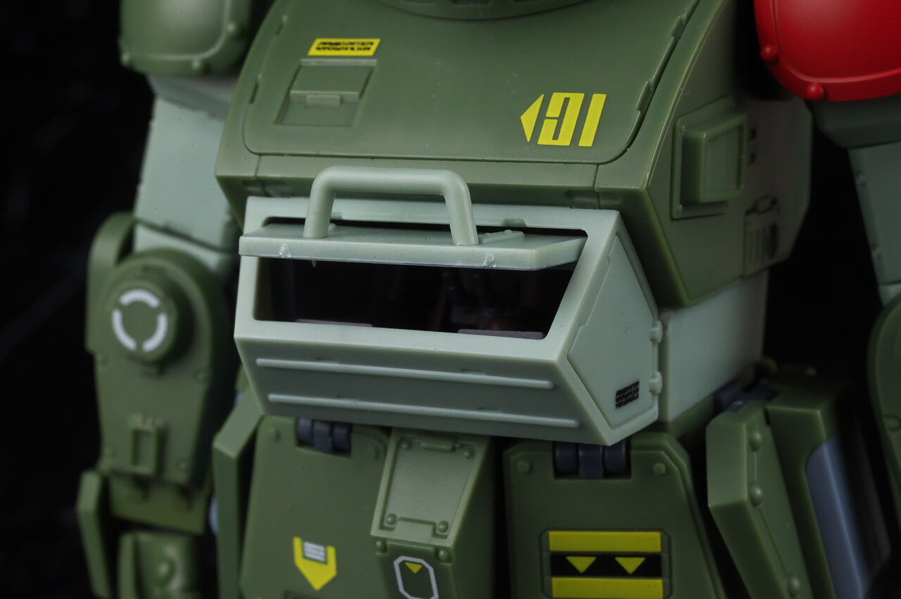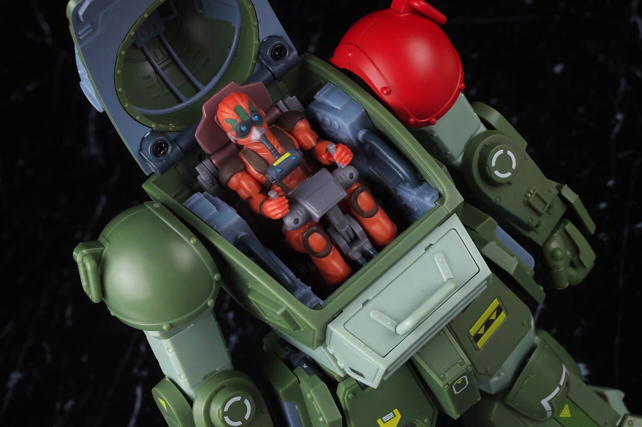 コクピットは胸部ハッチを上にスライドさせることで開くことが可能。内部のキリコフィギュアもきっちり塗装されてるので見栄え良好。こちらの詳細は後述。