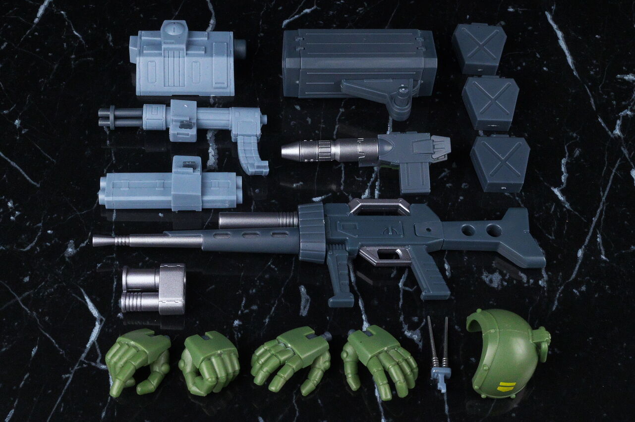 ヘビィマシンガン。こちらも精密に造形され色も細かく再現。弾倉の予備も2個付属し腰横に取り付け可。