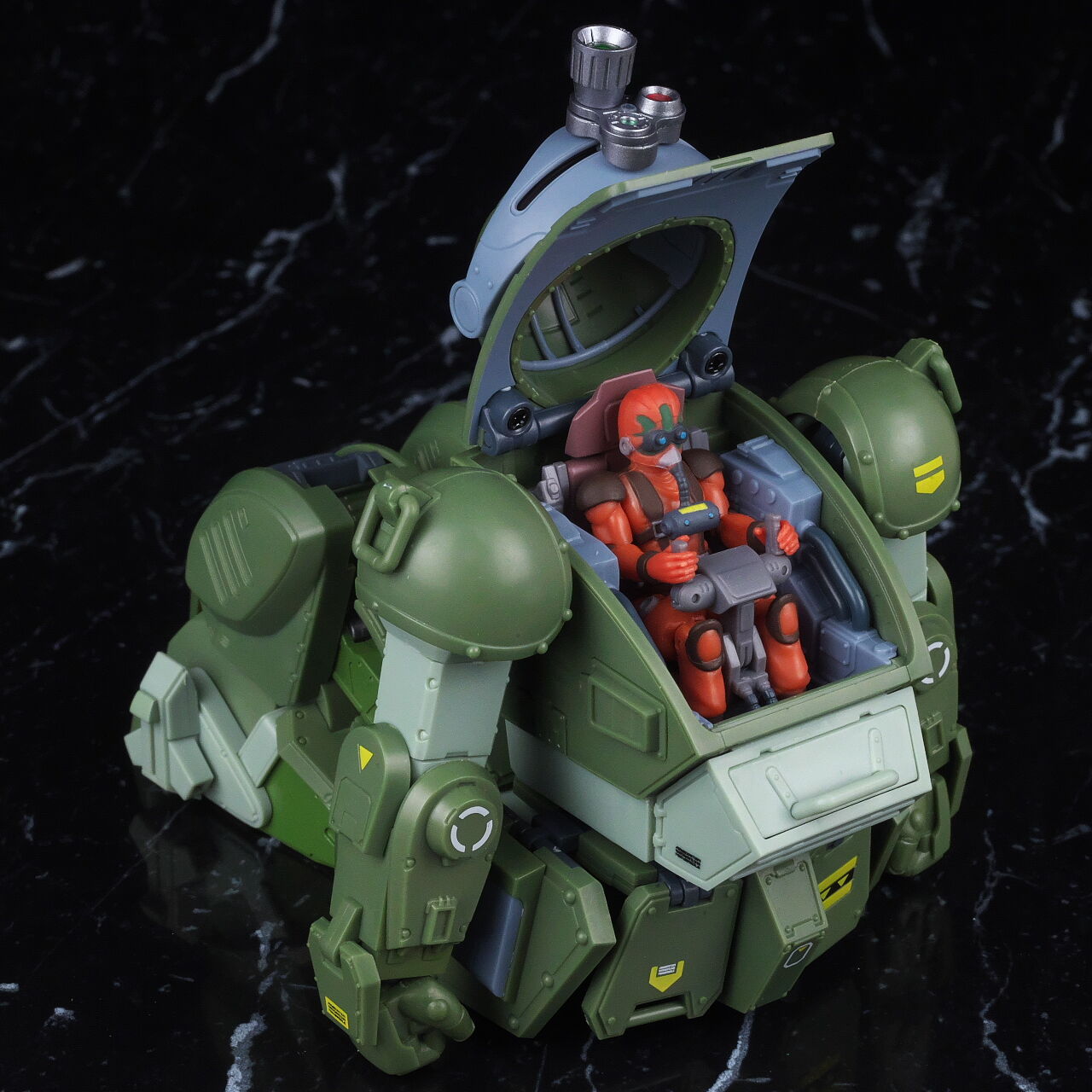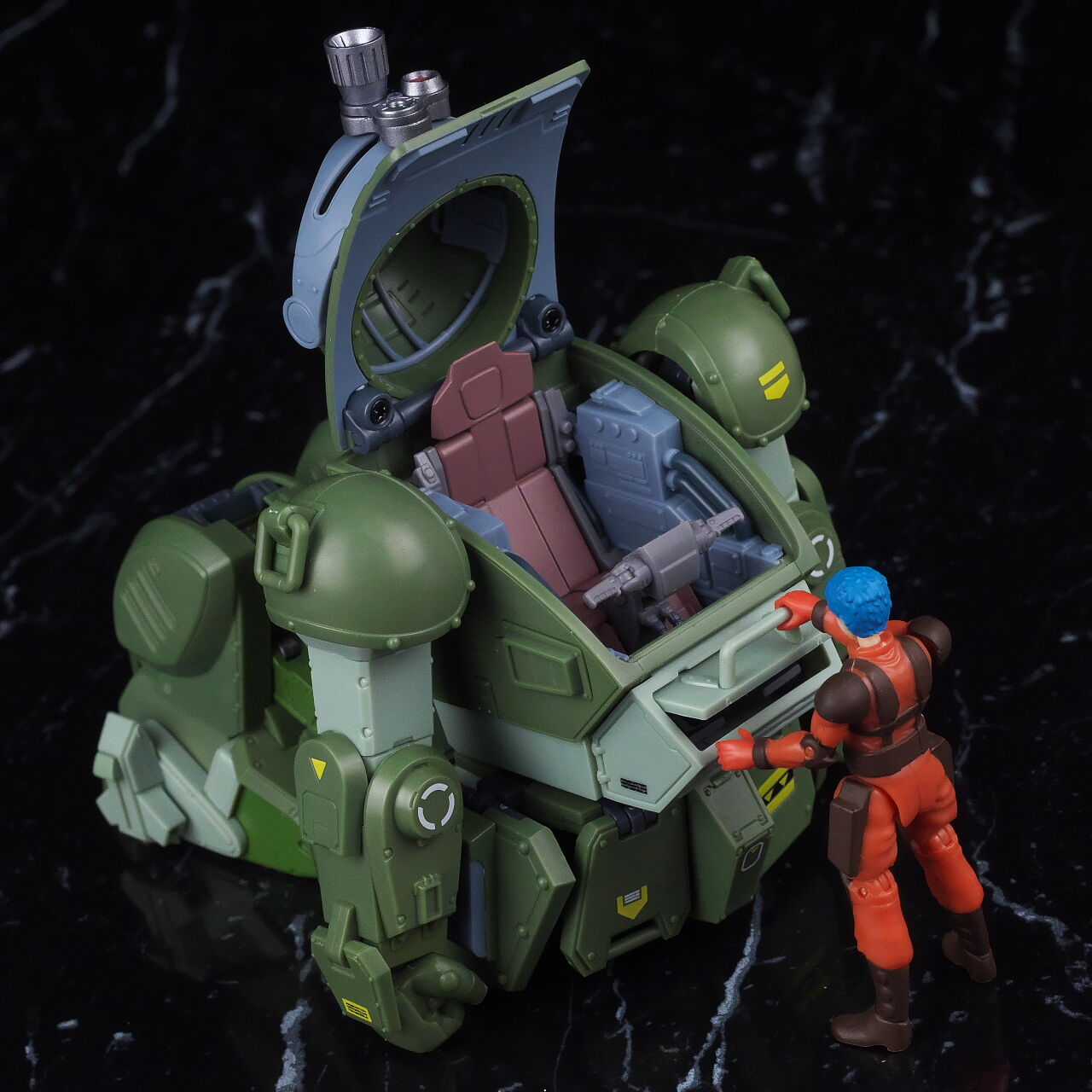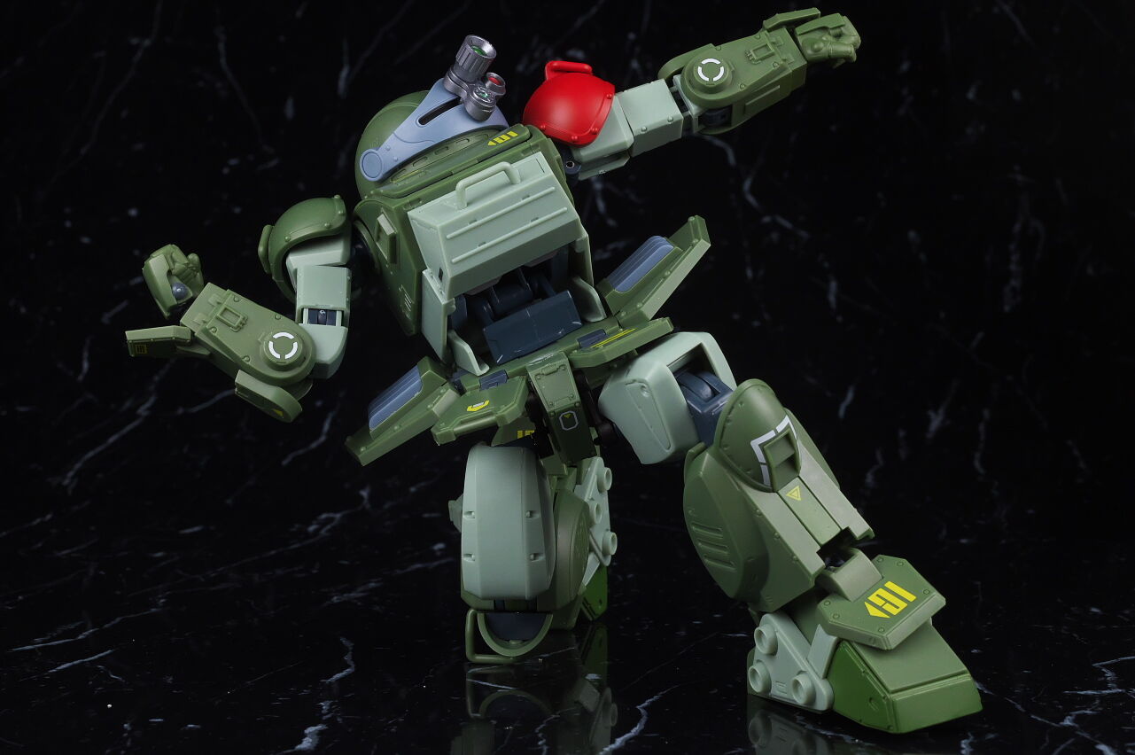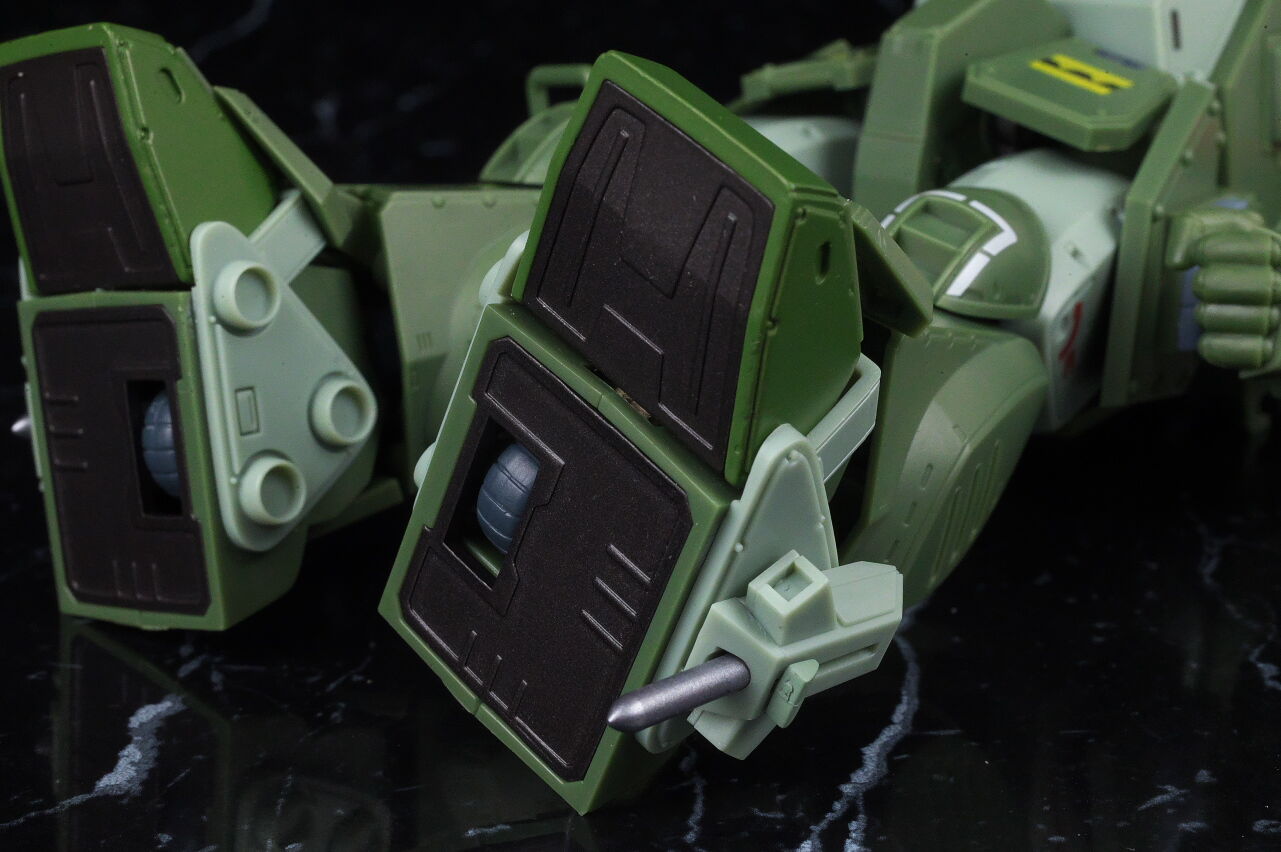 同じHI-METAL Rのダグラムやザブングルなどと同じくアレンジの少ないアニメに忠実な造形になっており、ディテールやマーキングなどは程良い量で精密感も十分、成型色中心ですが質感も落ち着いていて緑の色味もイメージ通りで格好良く仕上がってました。