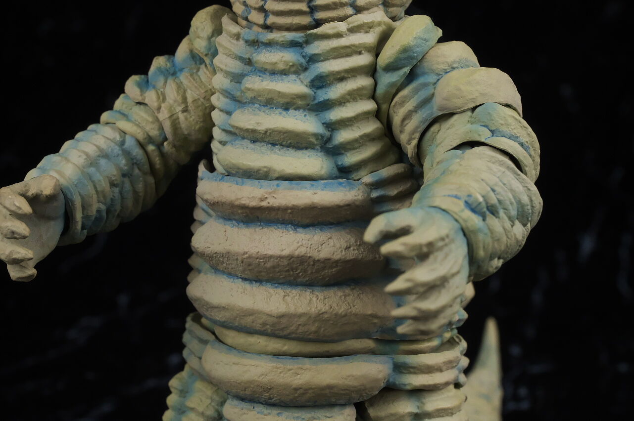 腕や足。怪獣らしく手足は短め。この辺の蛇腹造形や手首足首なども忠実に再現され、胴体同様関節もあまり目立たない作りになってました。