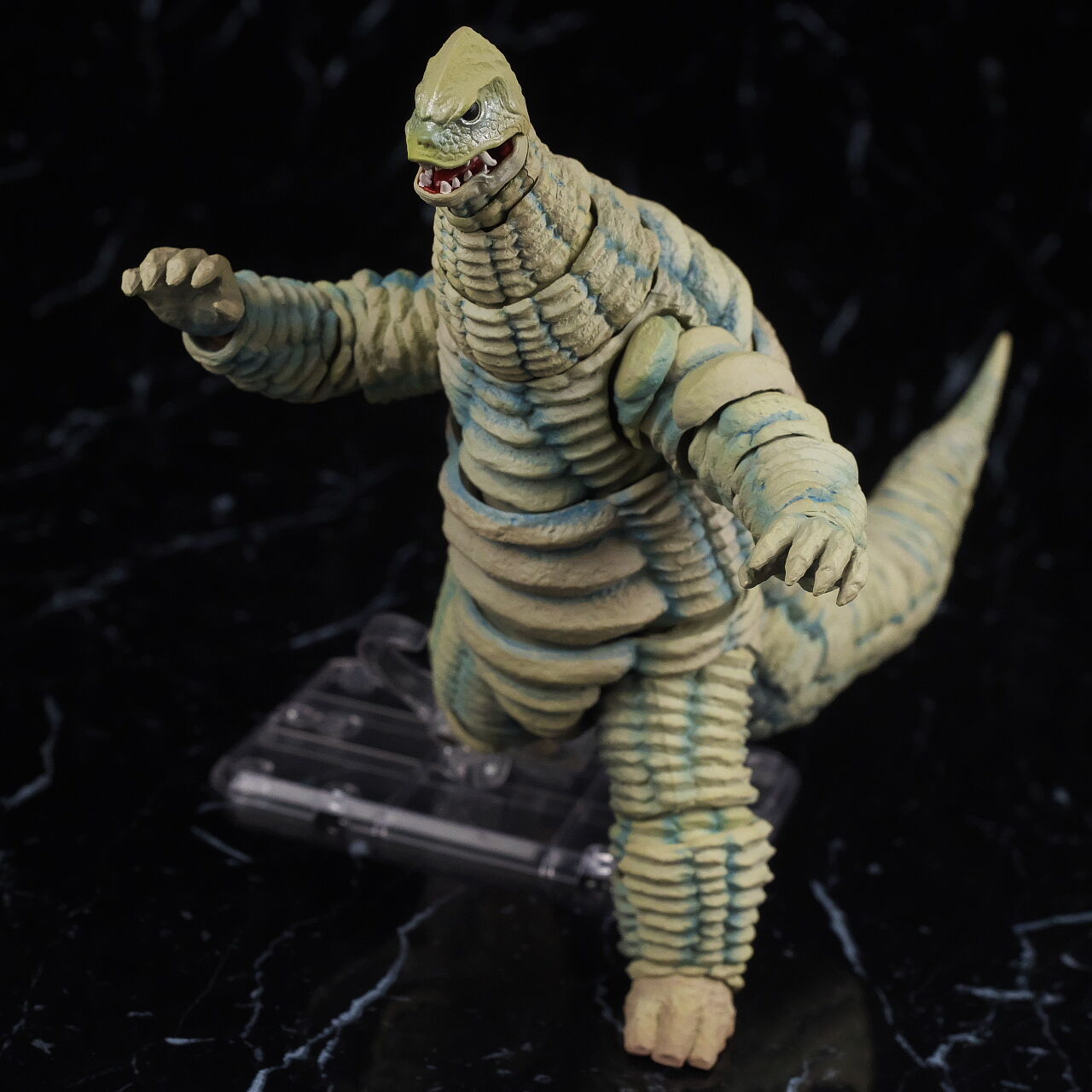 全身。最近の怪獣アーツ同様プロポーションは劇中のイメージ通りで、蛇腹状の鱗、独特な皮膚の色や模様など忠実に再現。