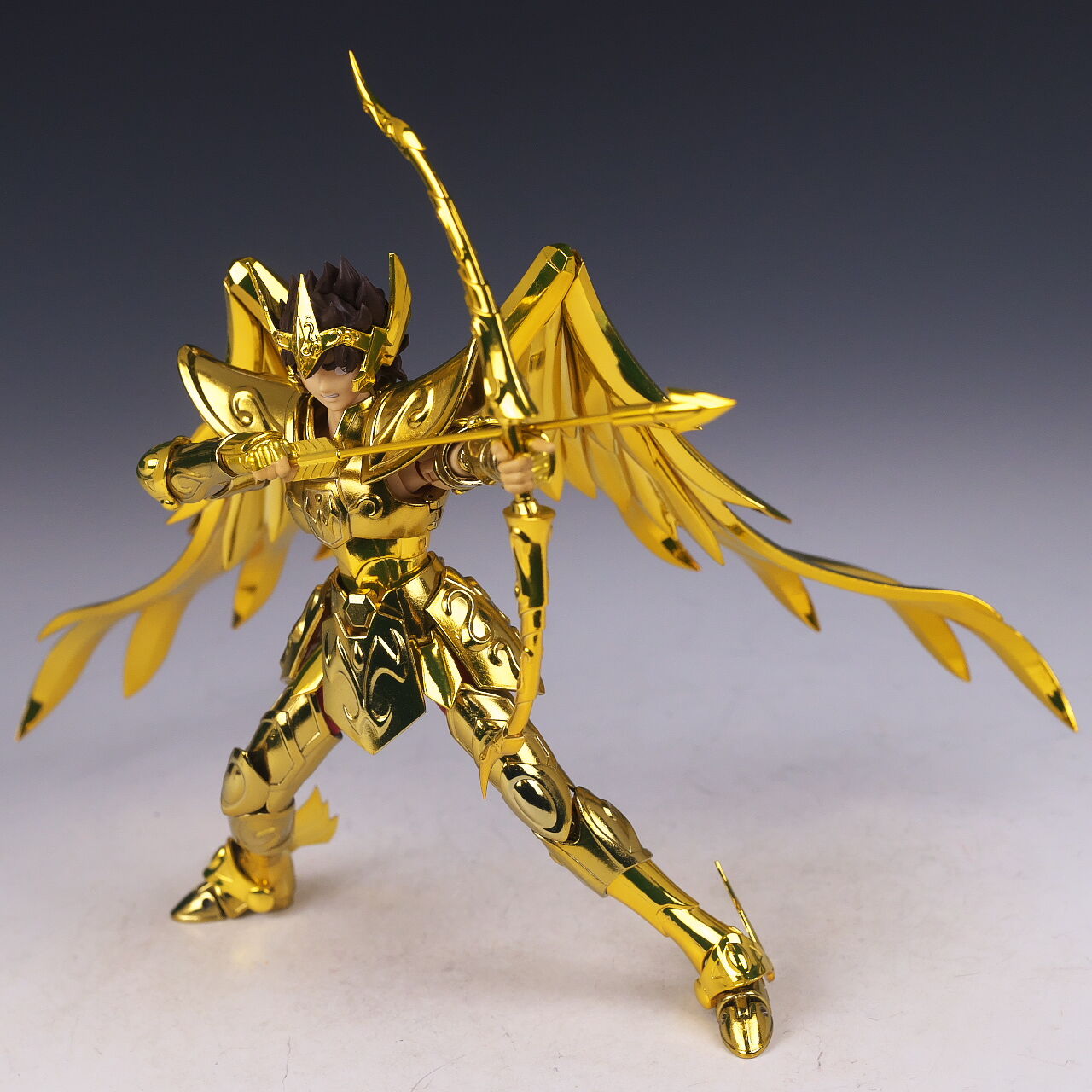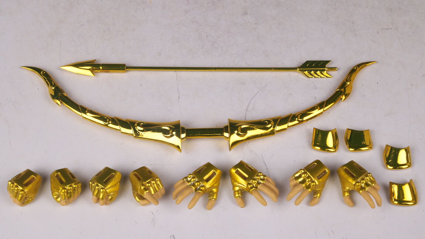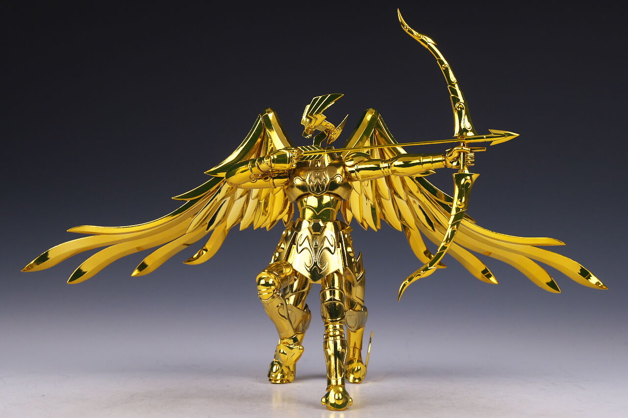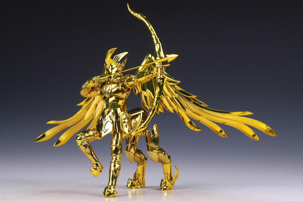全身。EX版のサジタリアス星矢は2019年にも発売されていましたが、今回は素体がEX METALになり、表情パーツを新規造形、聖衣の色を変更してリニューアル。