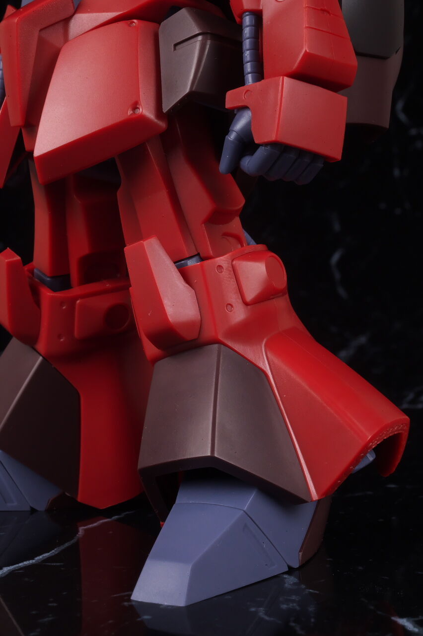 腕や足。胴体程では無いですが四肢も少し太めに。特に脚部は太腿と脛の長さがだいぶ変わってました。肩中央の穴には8月発売の黒リックディアス付属のエフェクトを取り付け可能だそうですが、個人的にはここの穴は無い方が良かったです。