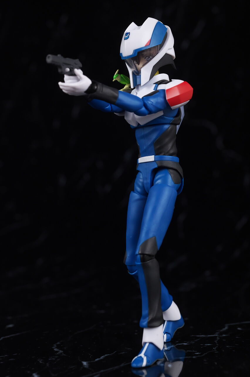 可動は前述の通り概ね良好。関節は硬いですが足首が小さいので自立はちょっと不安定。また敬礼時に見本ほど脚を閉じる動きも難しかったです。