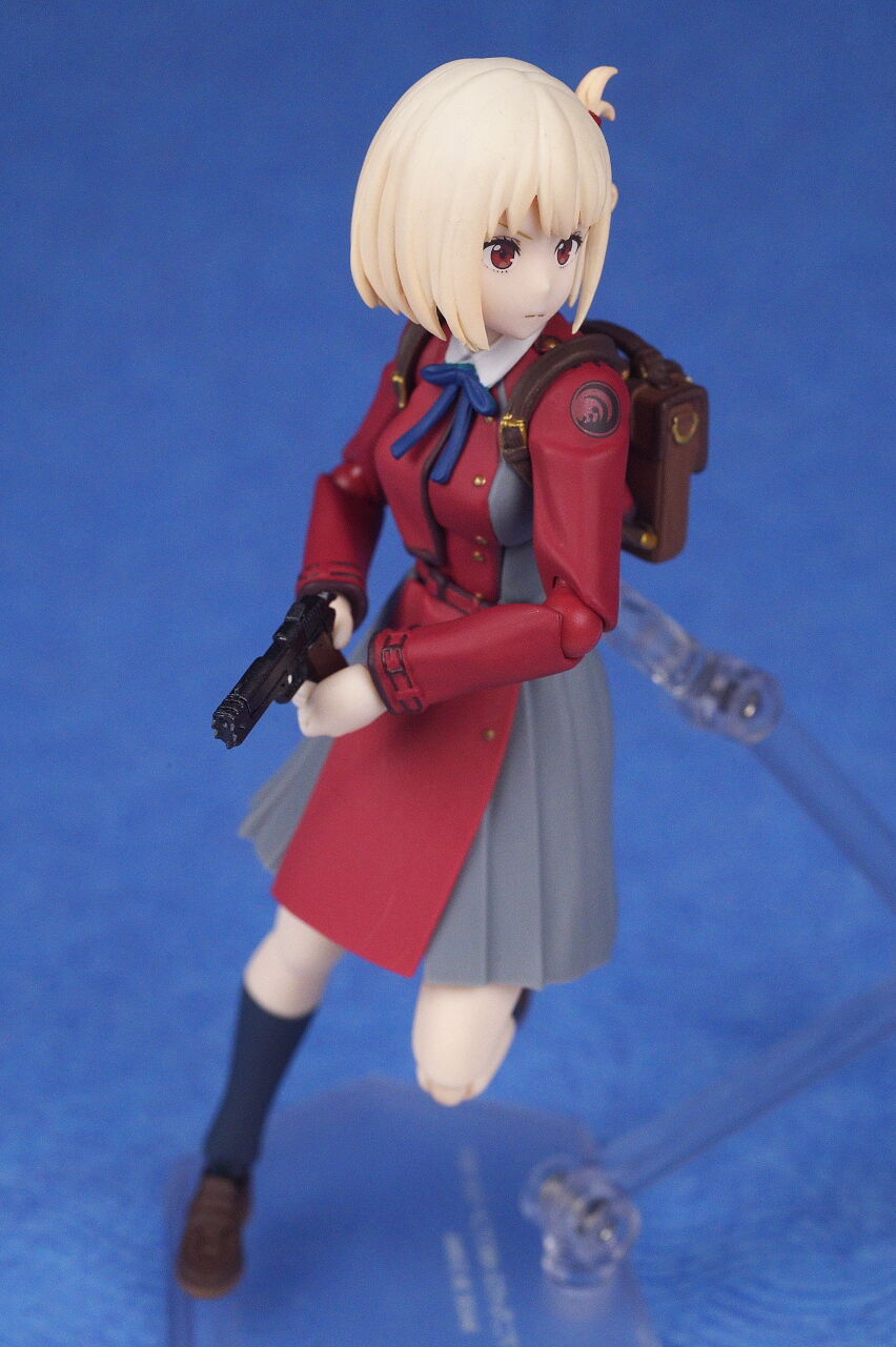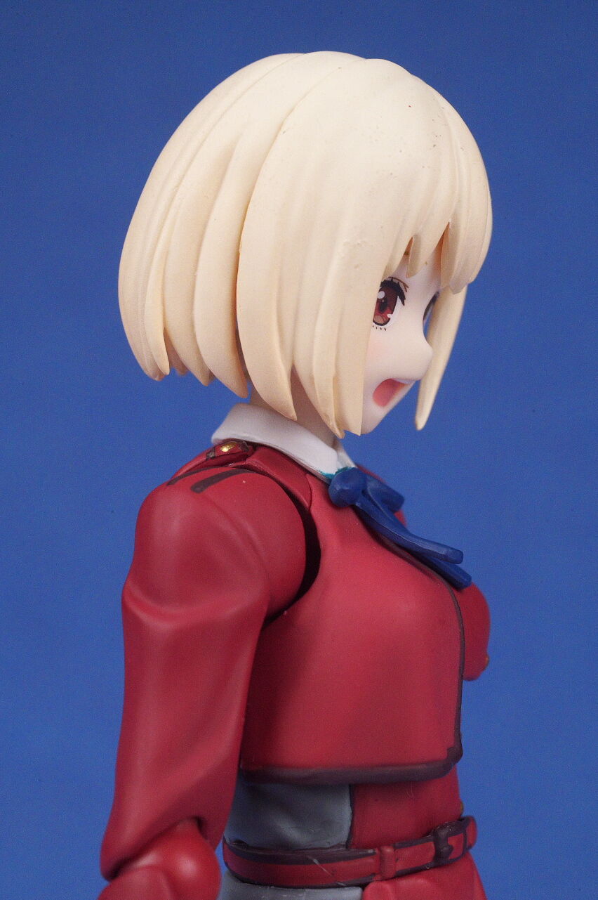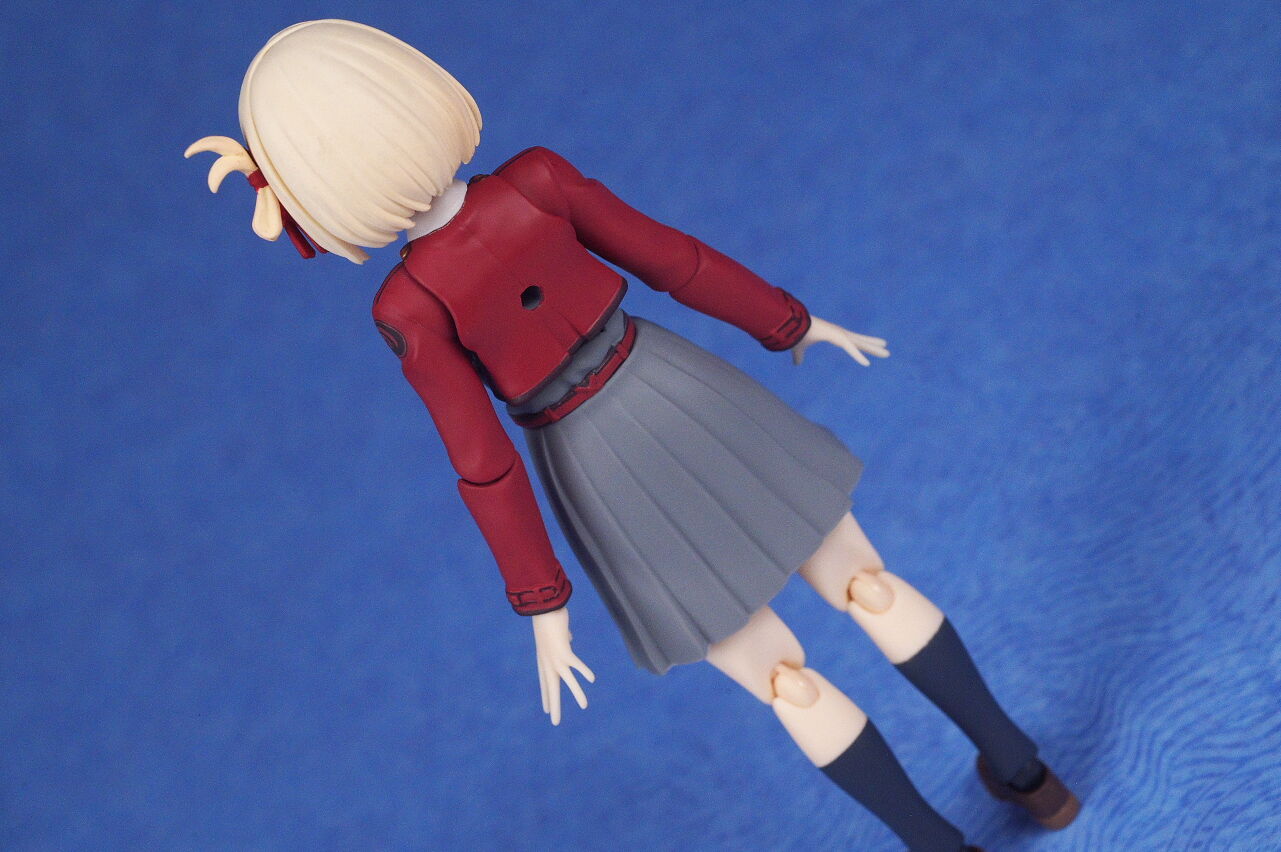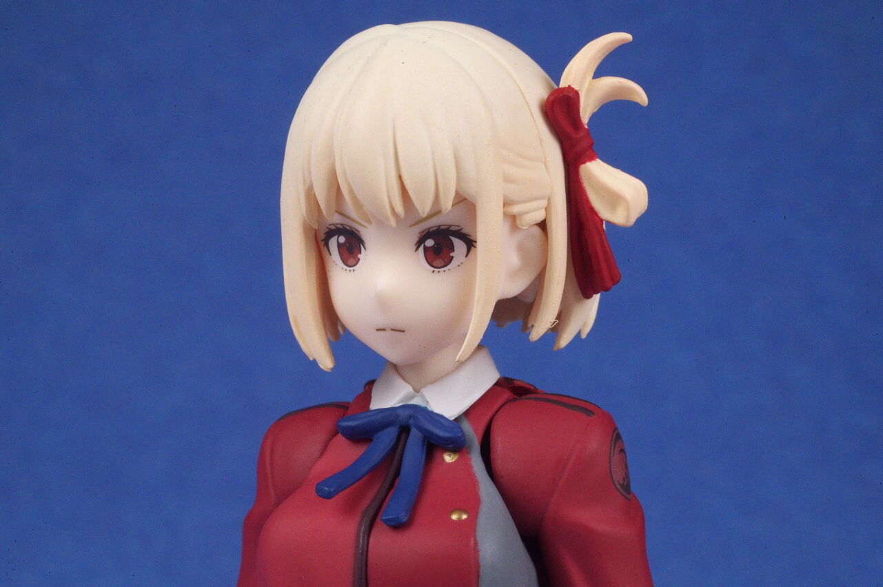 各部位など。衣装は基本のリコリス制服。アップで見ると多少塗装の粗も見えますが、実物はほぼ気にならないレベルで、左右非対称の独特なデザインなど細かく再現。