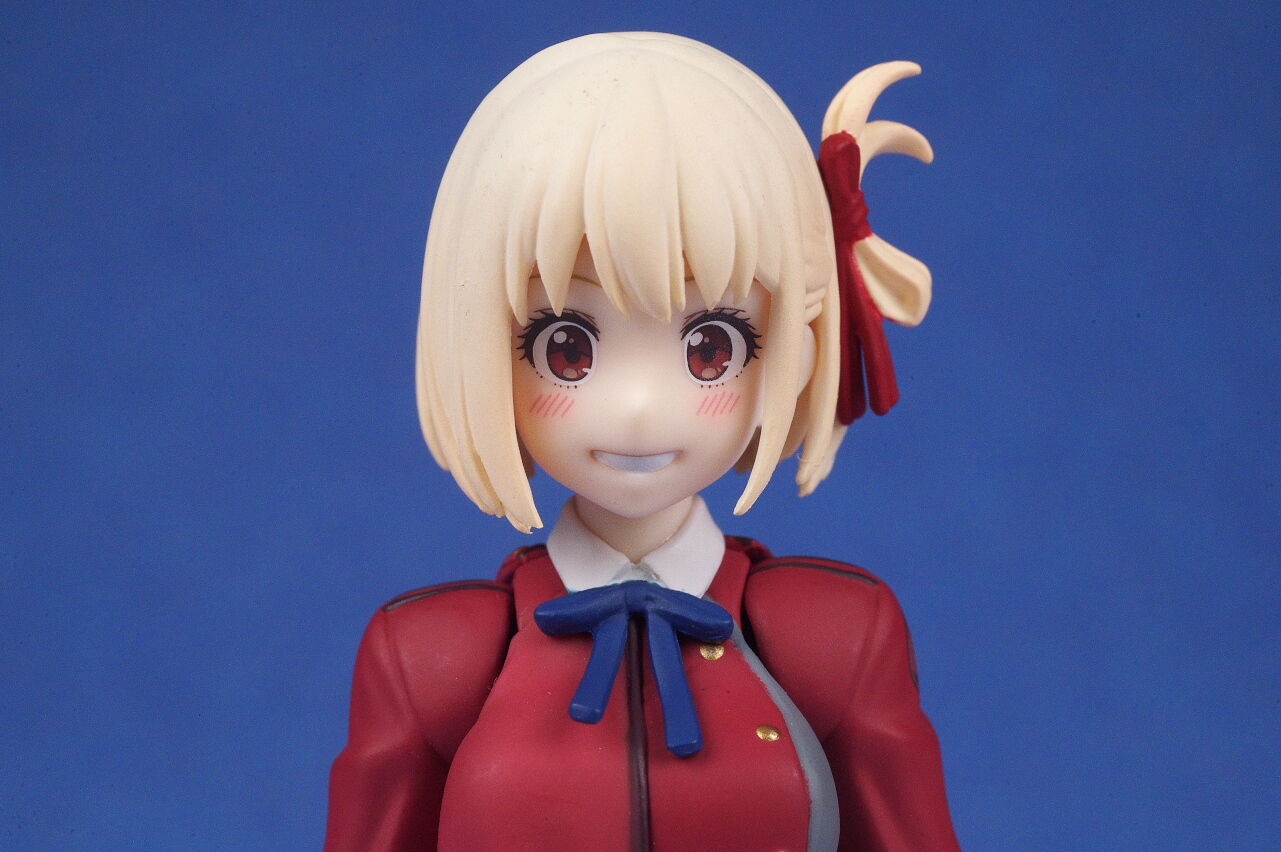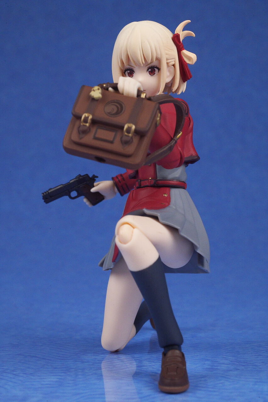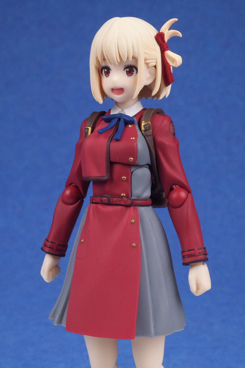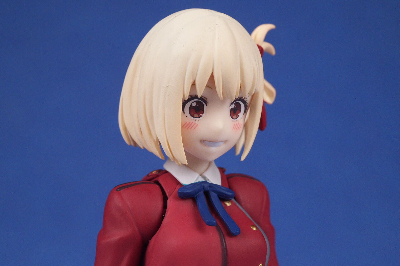 各部位など。衣装は基本のリコリス制服。アップで見ると多少塗装の粗も見えますが、実物はほぼ気にならないレベルで、左右非対称の独特なデザインなど細かく再現。
