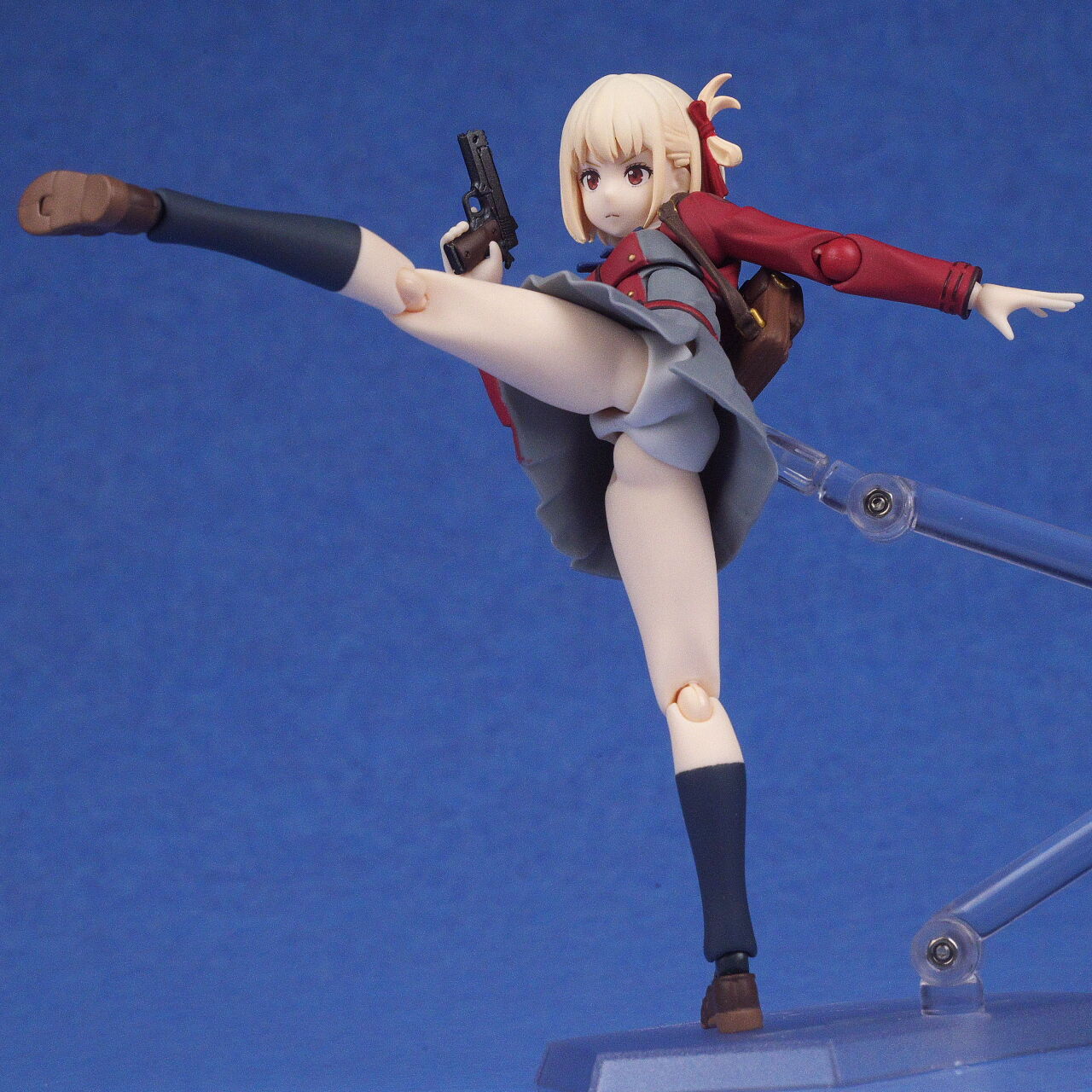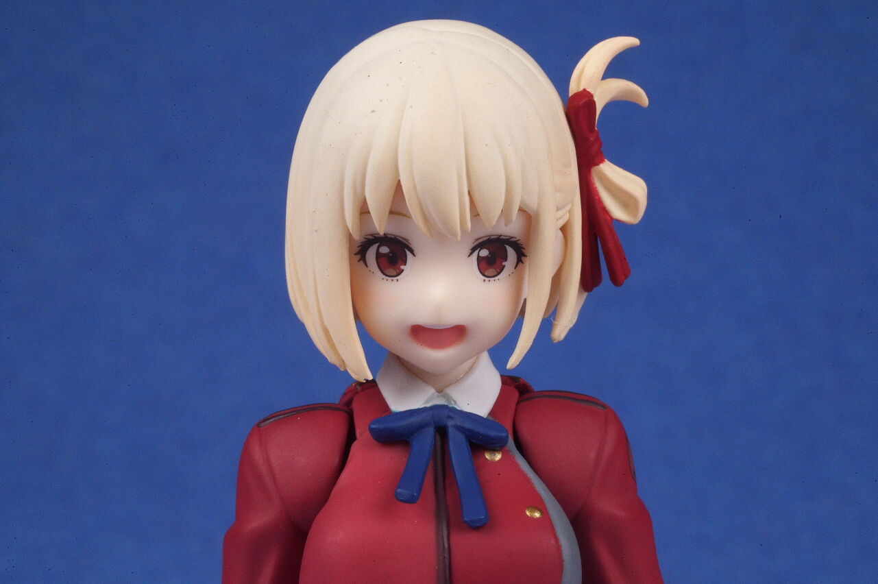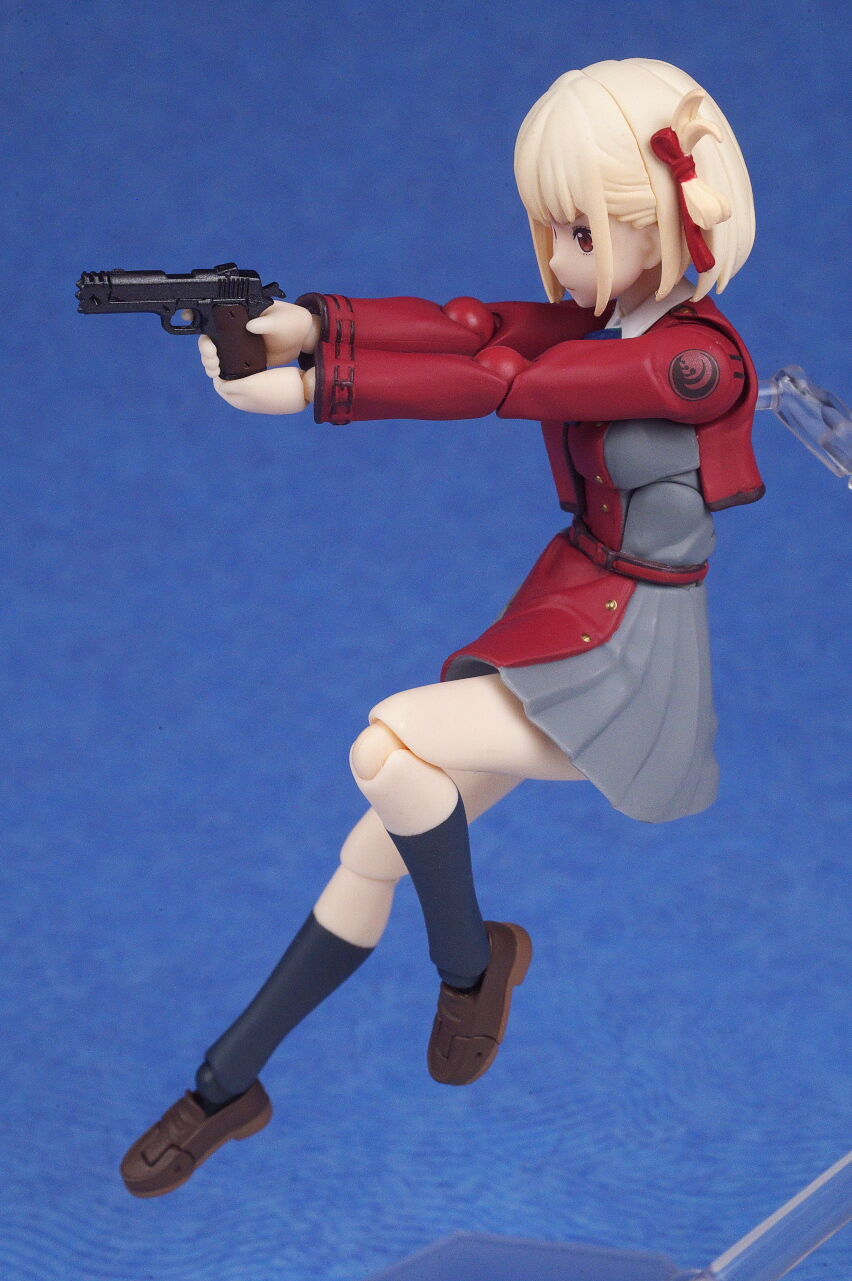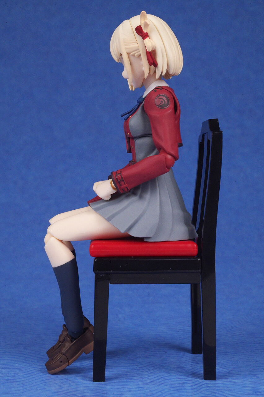 各部位など。衣装は基本のリコリス制服。アップで見ると多少塗装の粗も見えますが、実物はほぼ気にならないレベルで、左右非対称の独特なデザインなど細かく再現。