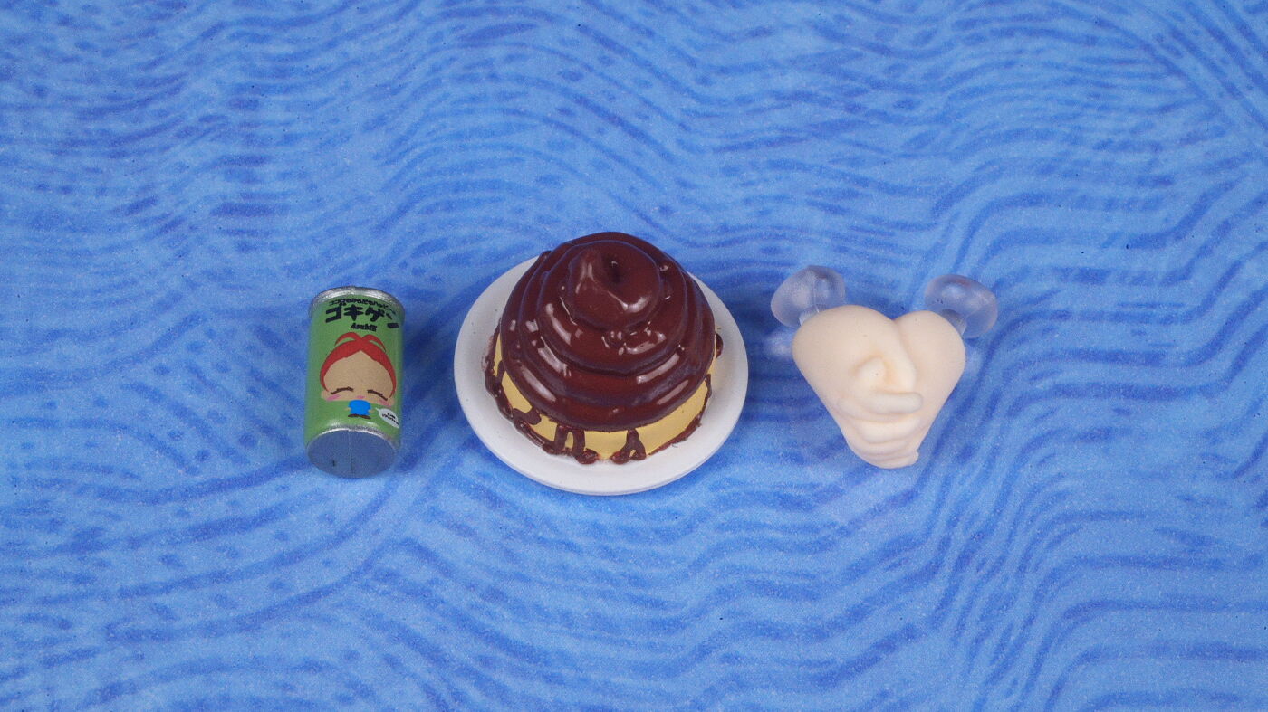 グッドスマイルカンパニー公式ショップ特典の「ゴキゲン」「ホットチョコパフェ」「手つなぎパーツ」。