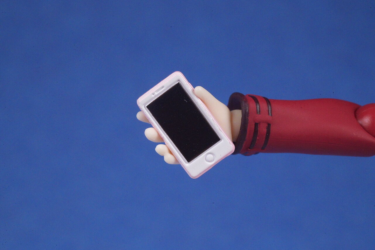 スマホ。専用の持ち手も付属。