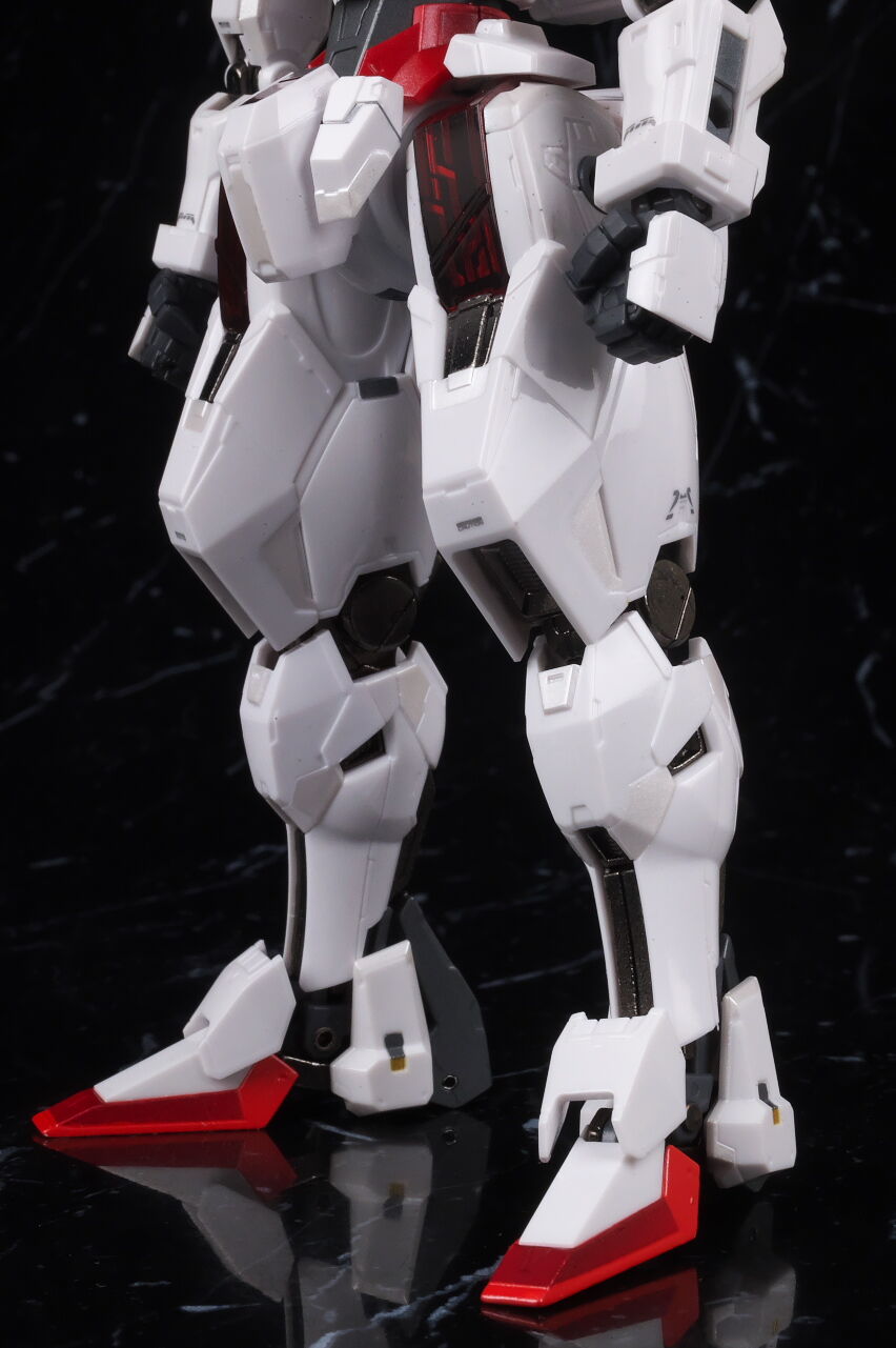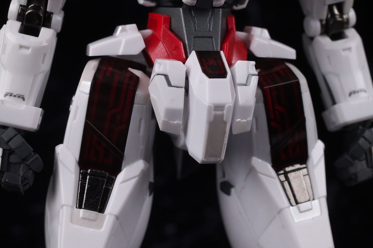 腰回り。太腿のシェルユニットは発光ギミック搭載ですが、そのままでもある程度は赤いラインが見える感じに。