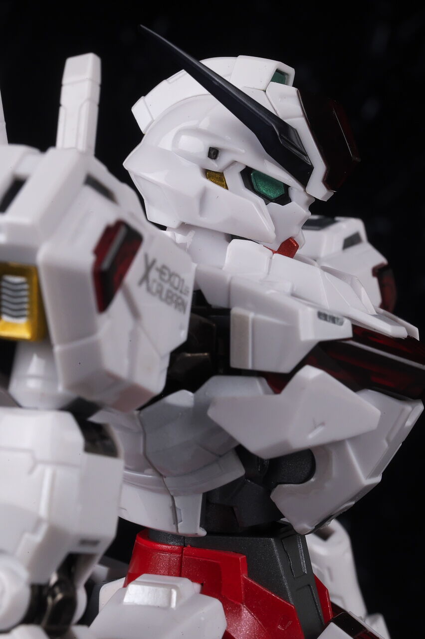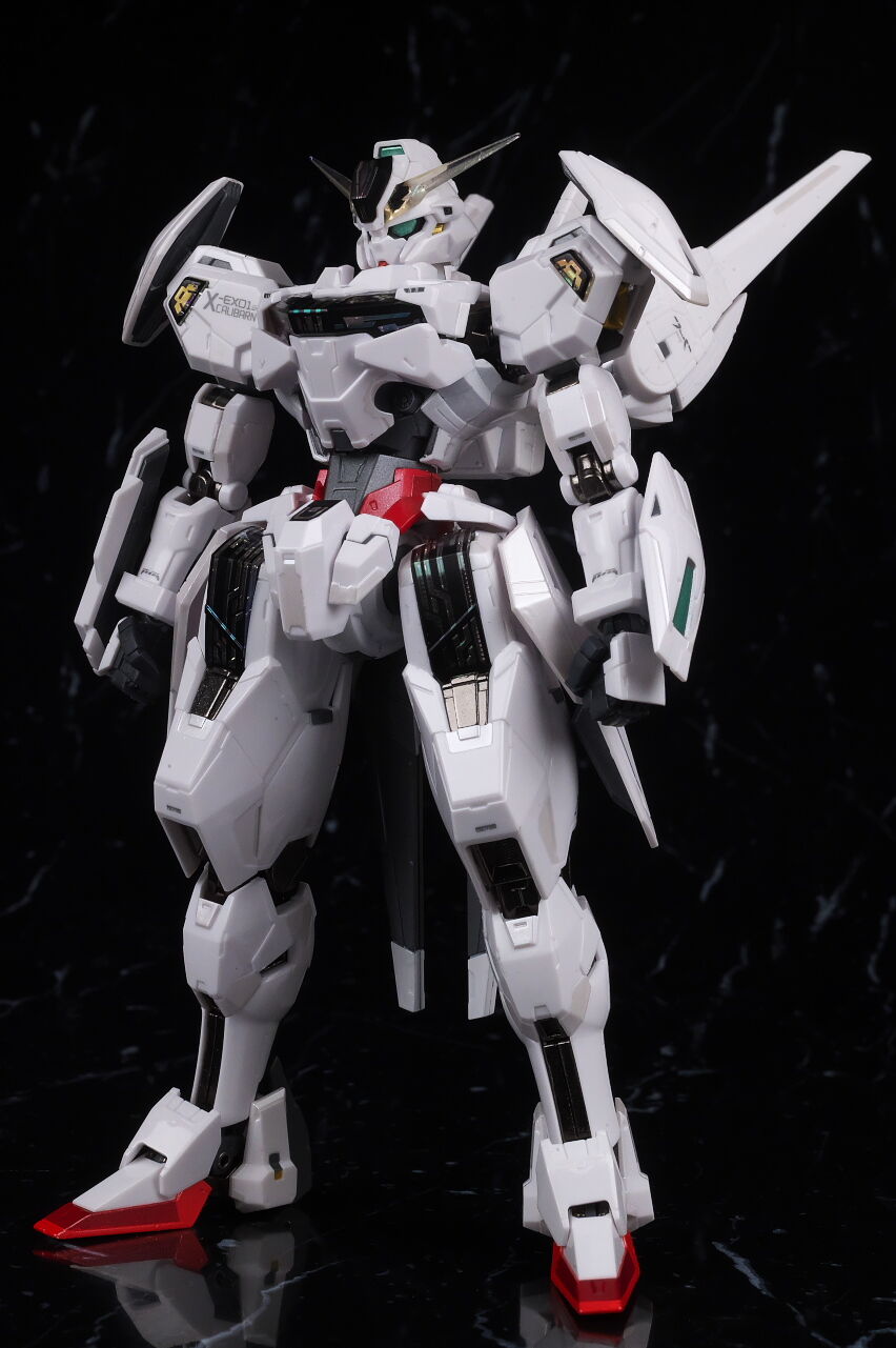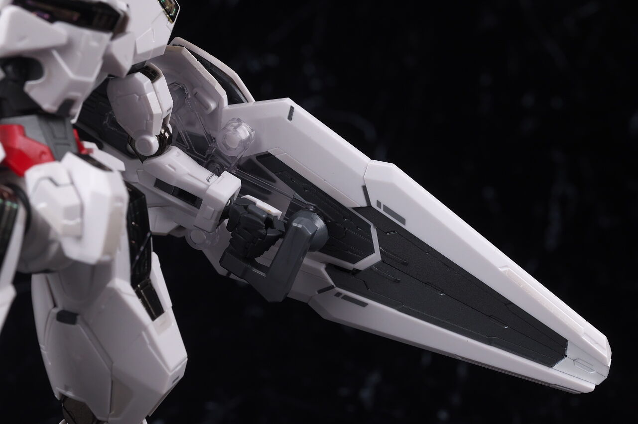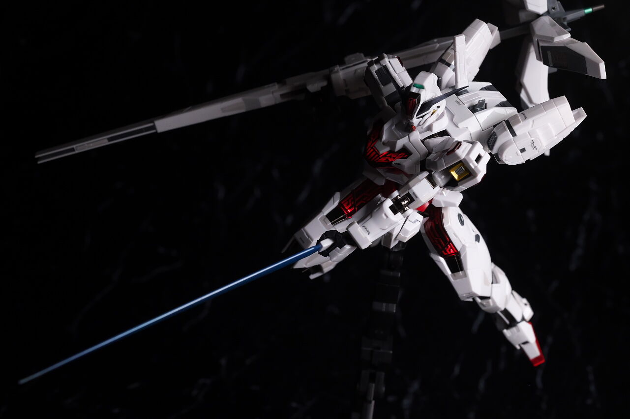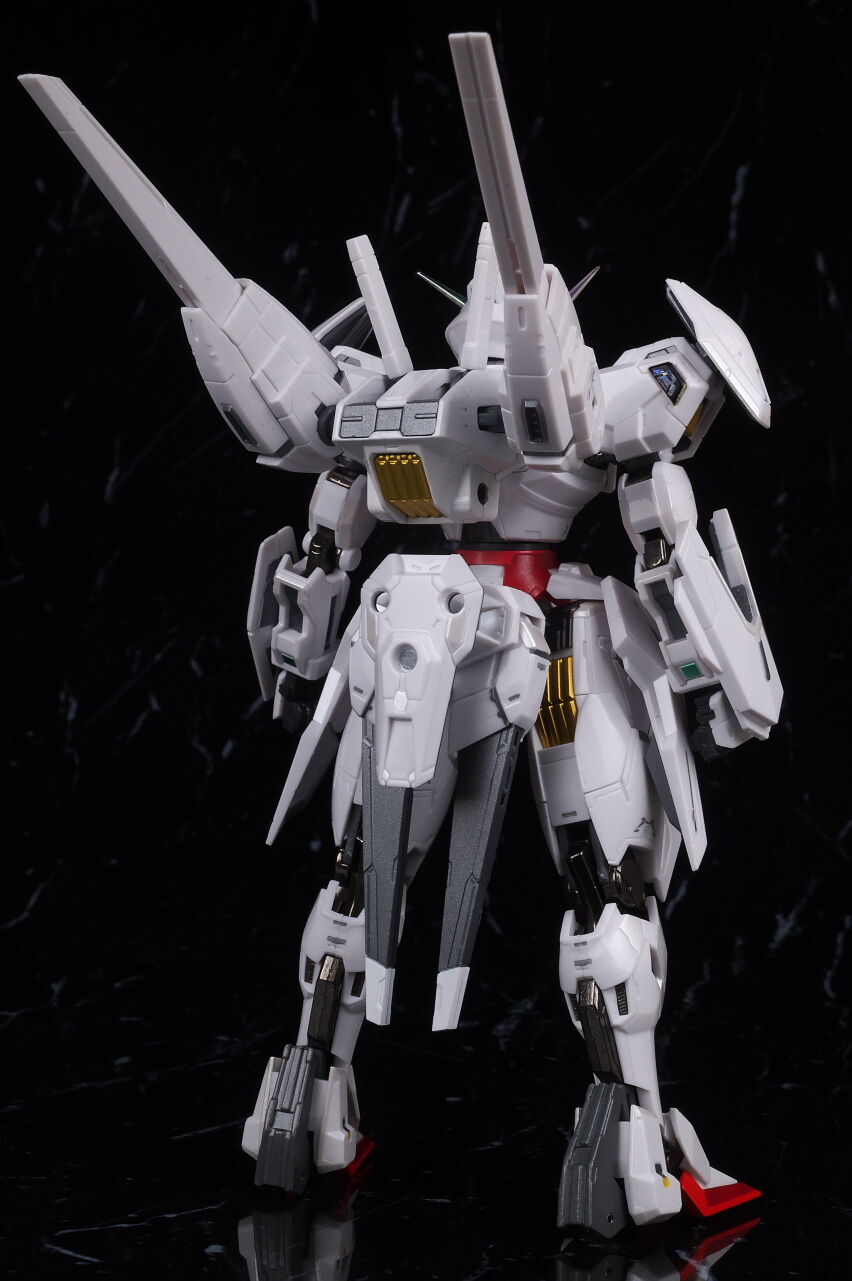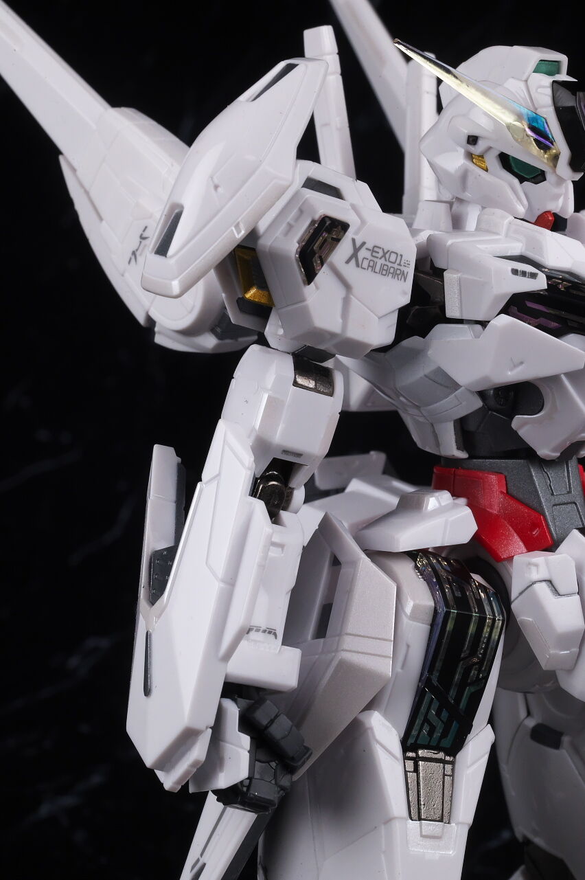 可動に関してはまずまずでそこまで気になるような部分は無く、武装やシェルユニットのギミックなどもきっちり再現、エアリアルの時に目しか光らずいまいちだったライトアップギミックも、今回は胸部と太腿のシェルユニットも光るようになり、発光時の見栄えはグンと良くなって、内容に関してはエアリアルの時より色々進化してた点は良かったです。