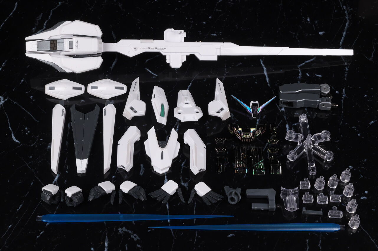各部位など。エアリアル同様プロポーションはほぼ設定画そのままで、シェルユニットはクリアパーツで再現。白は成型色ですが、劇中や見本の色味とかなり違っていて、見本の印象よりだいぶ安っぽかったです。