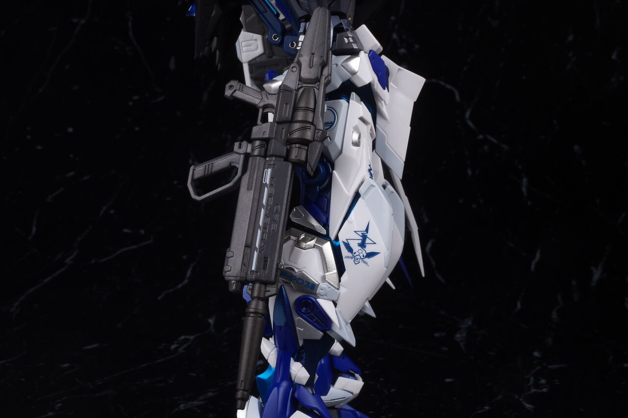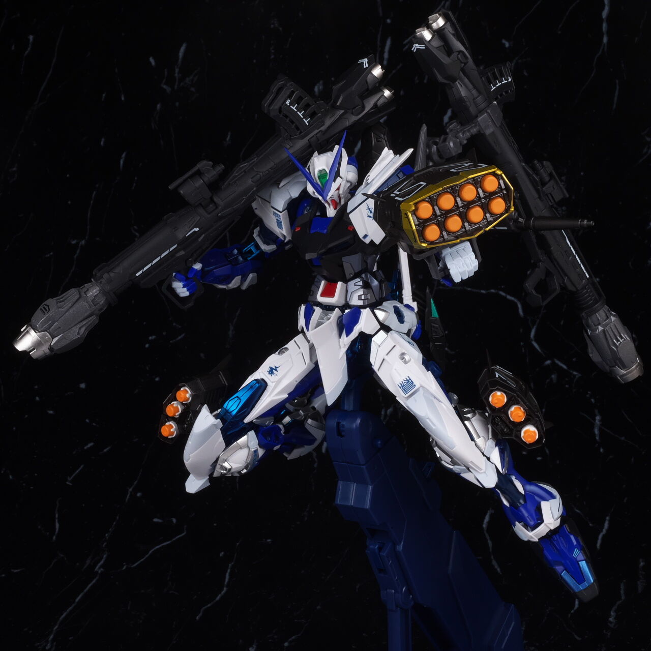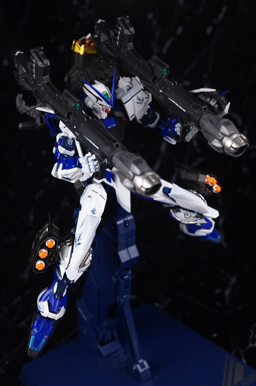 無反動砲両手持ち。今回は腰関節も改良されているので可動に関してはこれまでのアストレイの中で一番に。