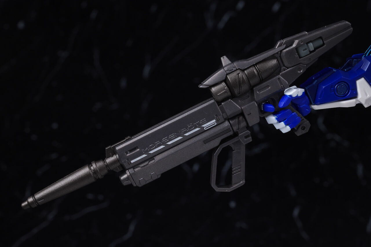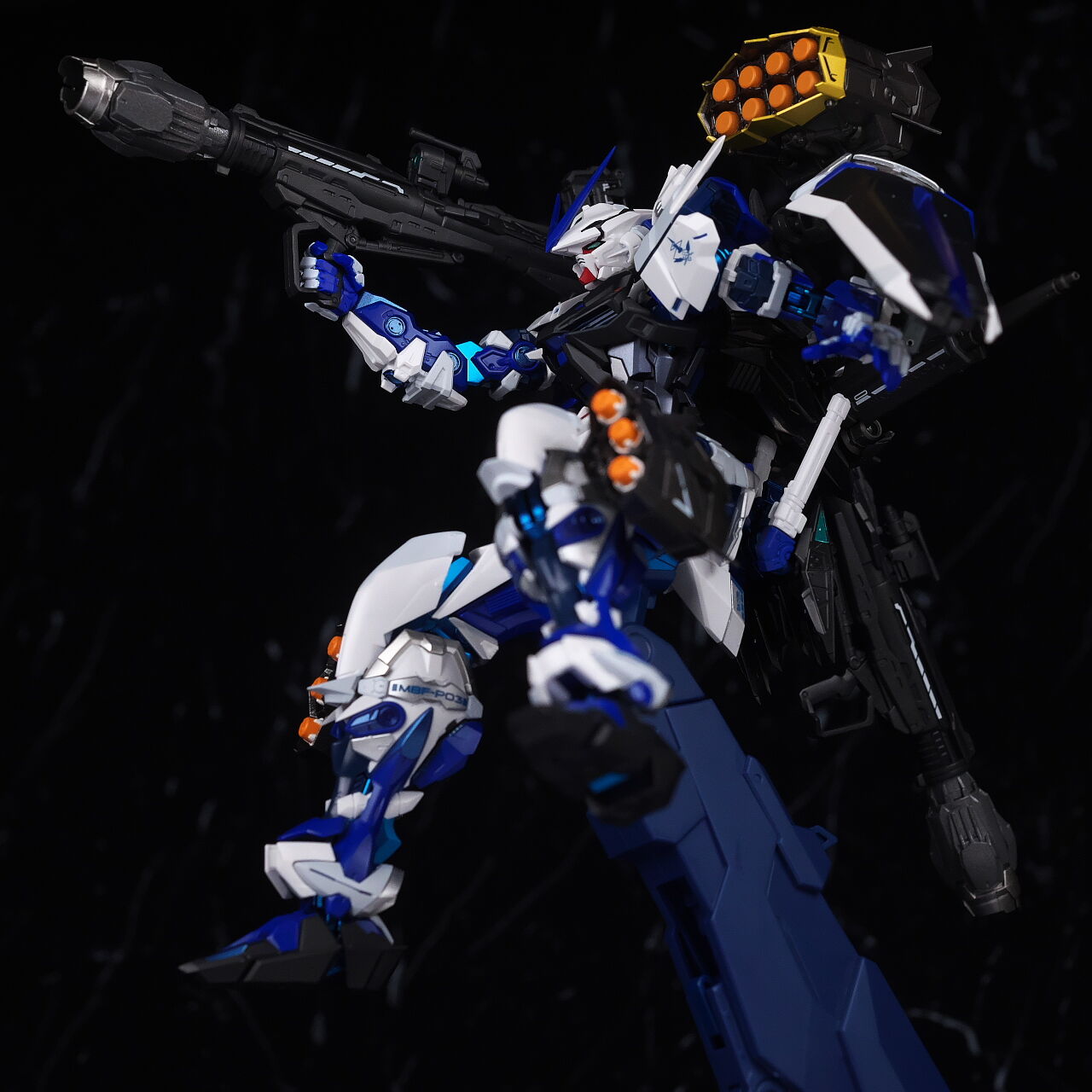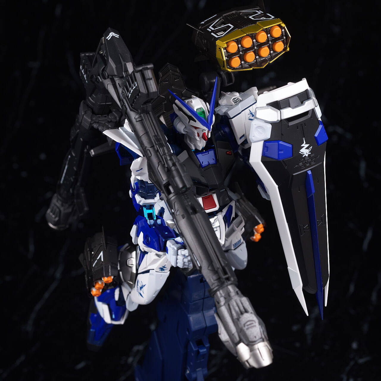 無反動砲両手持ち。今回は腰関節も改良されているので可動に関してはこれまでのアストレイの中で一番に。