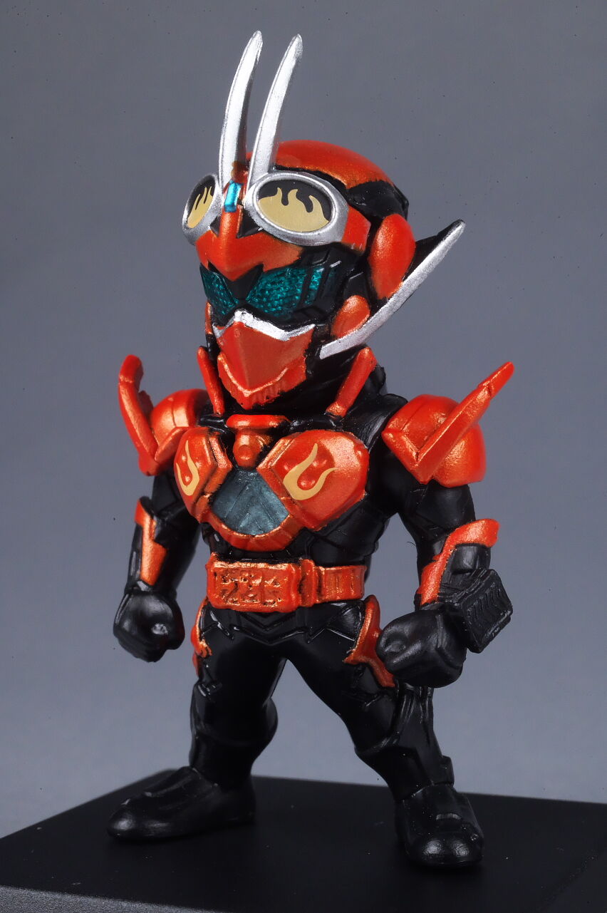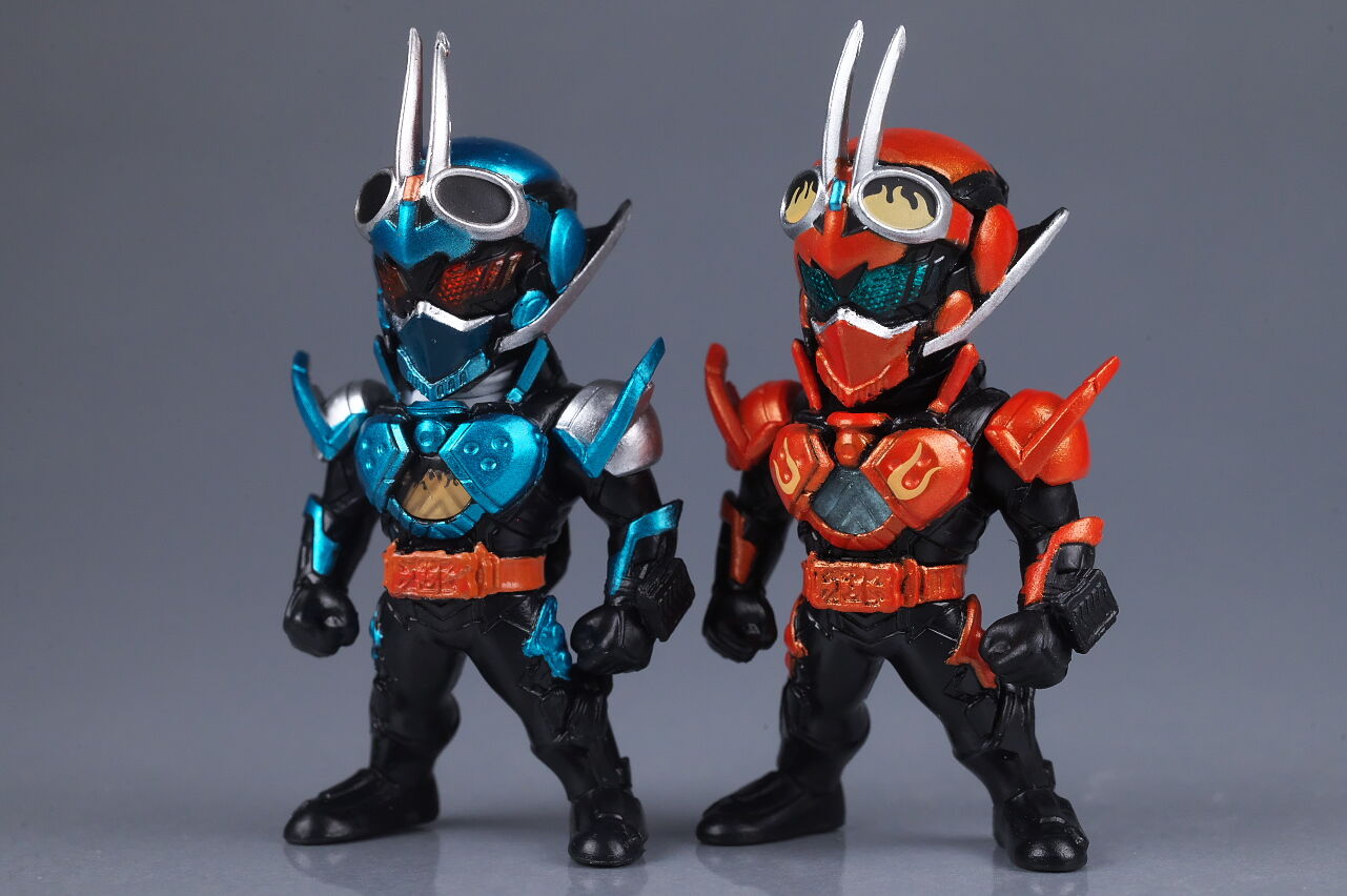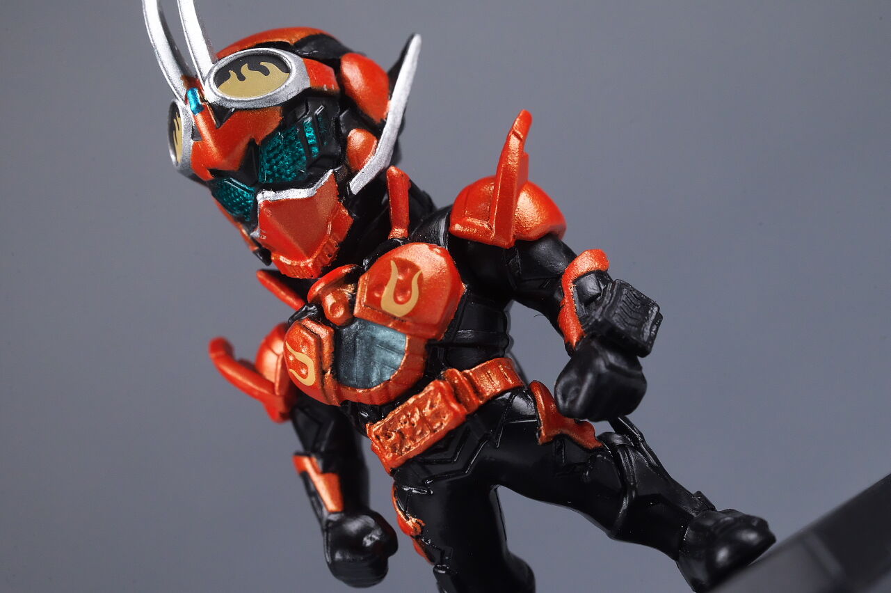 こちらはガッチャードのカラバリで造形は共通。他と同じく脚部の色はごっそり省略されてますが、ゴーグルや胸部のファイヤーパターンは再現されており、見栄えはまずまず。