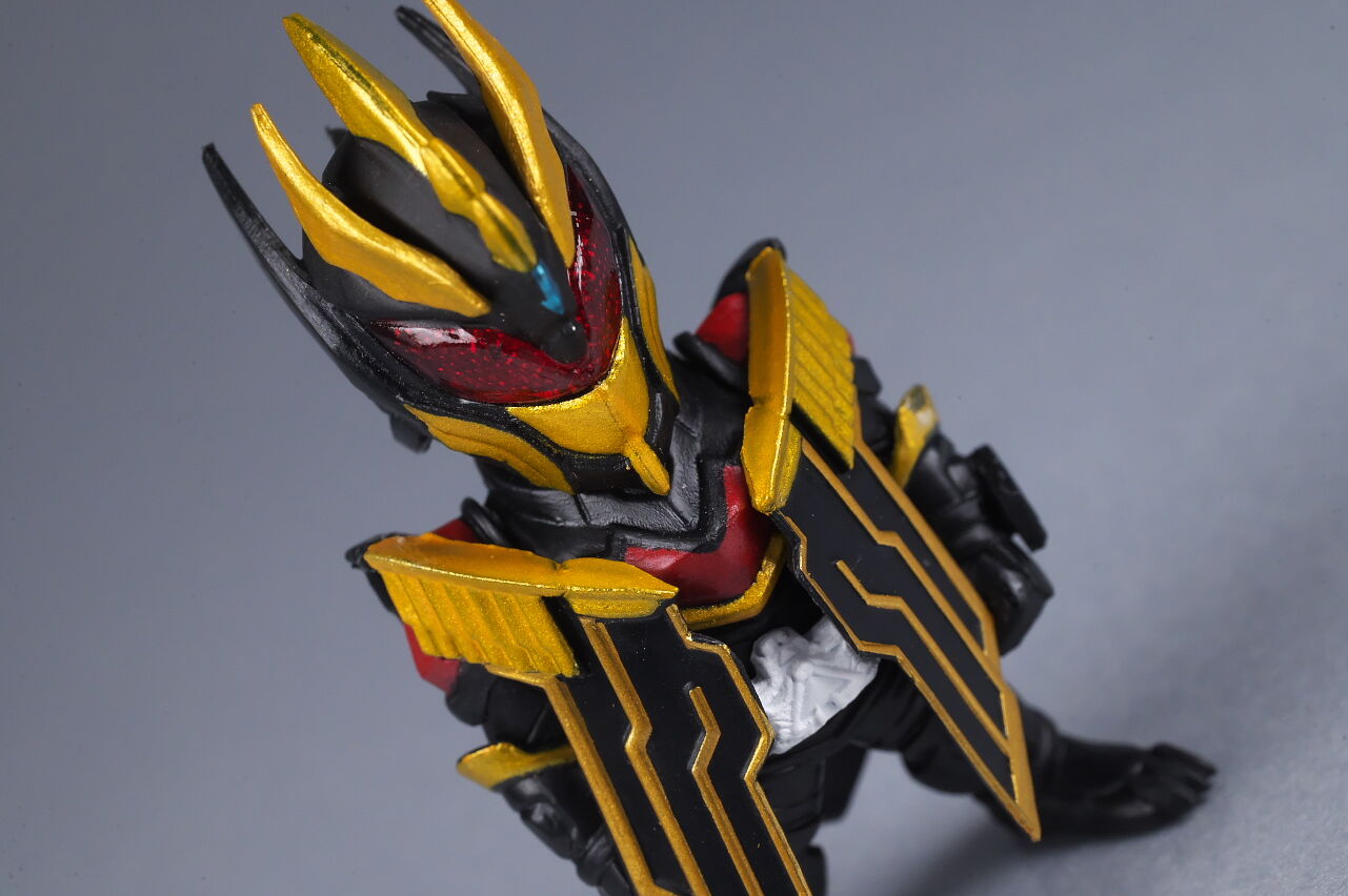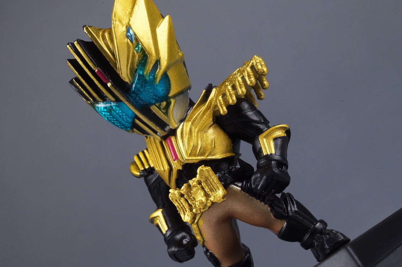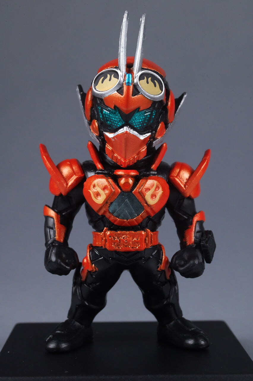 こちらはガッチャードのカラバリで造形は共通。他と同じく脚部の色はごっそり省略されてますが、ゴーグルや胸部のファイヤーパターンは再現されており、見栄えはまずまず。