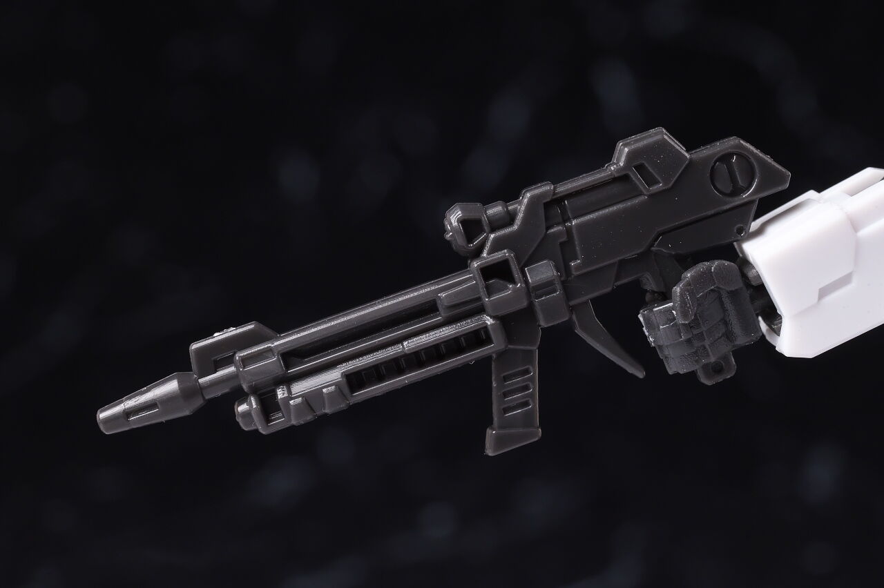 ビームライフル。アップだと肉抜き穴が目立ちますが、そもそもかなり小さいので実物ではそれほど目立たず。フォアグリップは動かないので注意が必要。