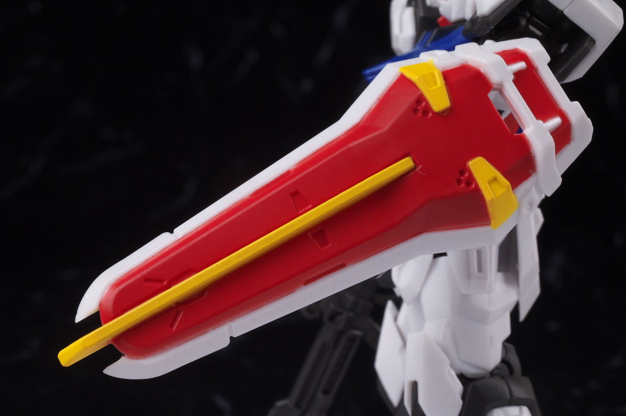 ライフル、シールド装備。エールユニットもプレバンでの別売りなので今回付属する装備はこの2点のみ。