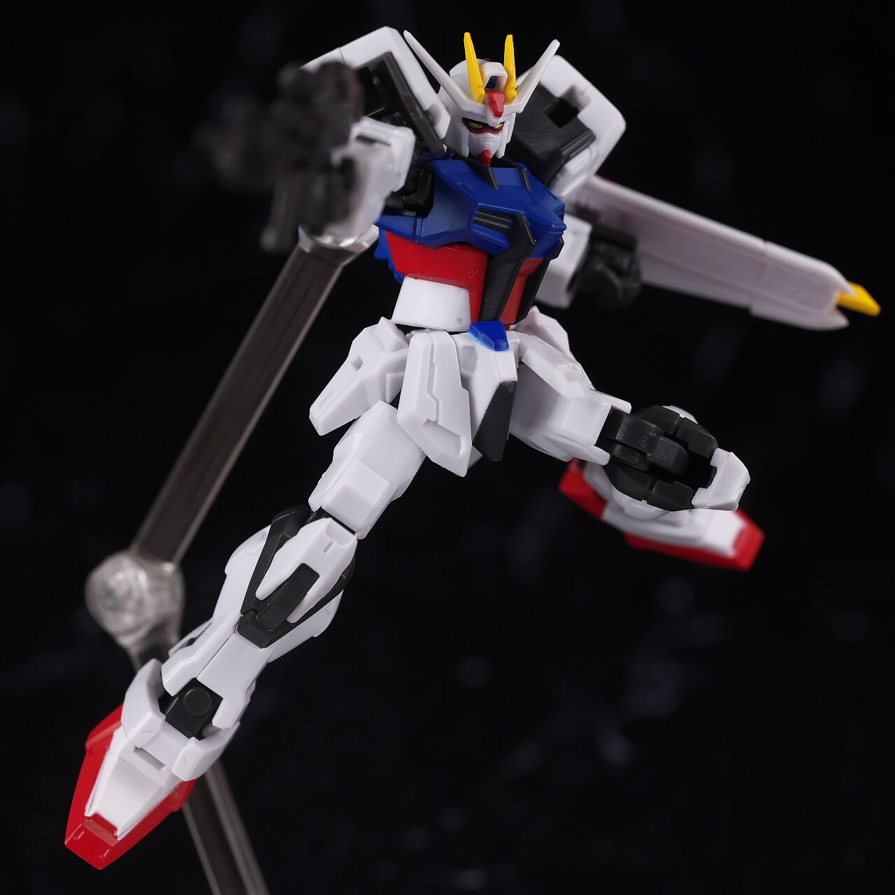 ダッシュ。いつも通り3mm穴のスタンドジョイントが付きますが、背中のエールストライカー用の穴も3㎜で、そちらの方が使いやすかったので今回はそちらを使用。