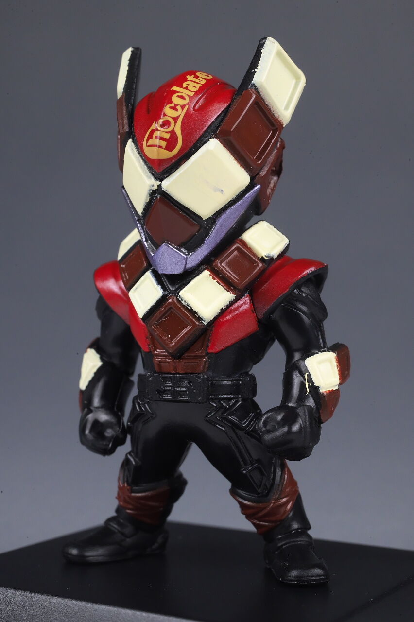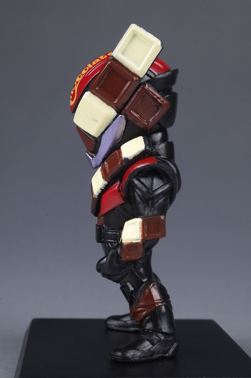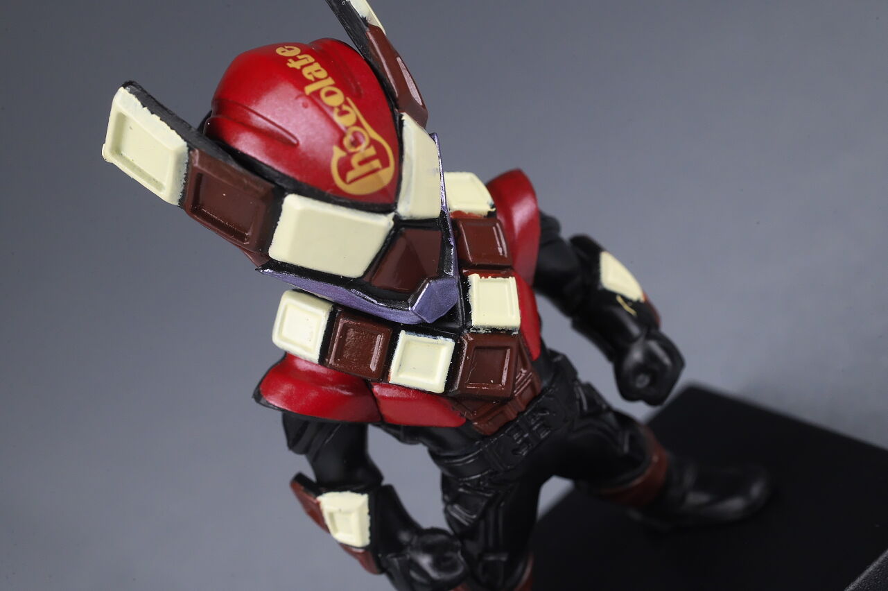 こちらもベルトや太腿周りの色が省略されていますが、チョコモチーフの意匠の再現度は高く、頭部の文字も綺麗にプリントされてました。