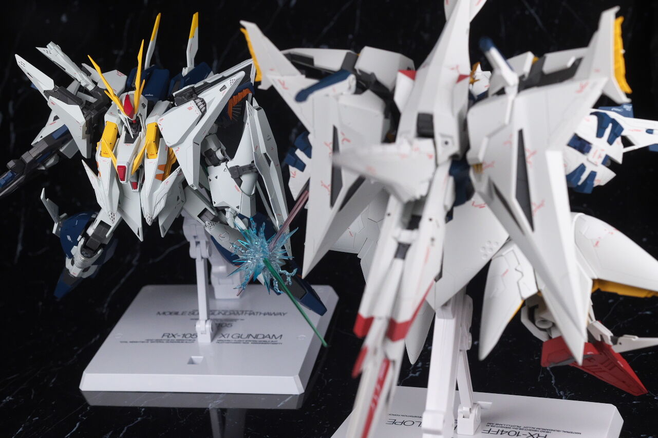 2016年発売のΞガンダム ミサイルポッド装備(マーキングプラスVer.)と。頭部やカラーリング、その他諸々デザインは大きく変わってました。