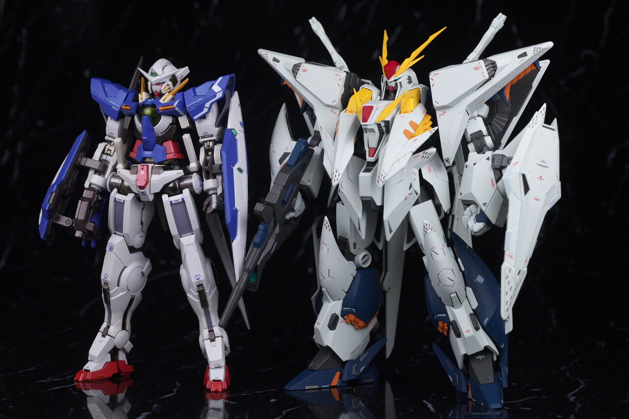 サイズ比較用にMBエクシアとも。ROBOT魂でありながらMBよりも大きめ。