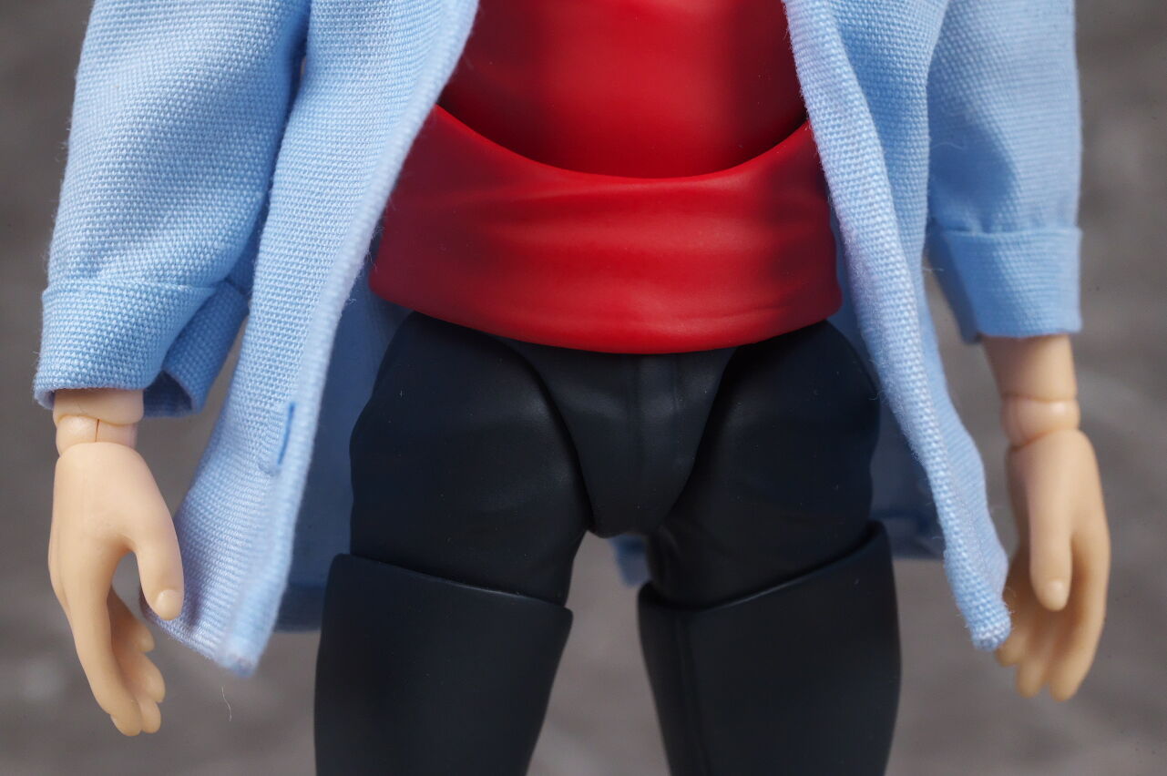 ジャケット無しで全身。バズモッドシリーズらしく上着は布素材で着せる形式。上着を着せる前提だからか、体型は原作イメージより少し細めでした。