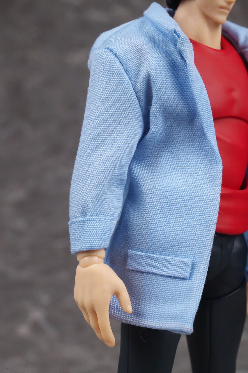 ジャケットを着せた状態。ジャケットは縦横、襟にワイヤーが入った作り。ポーズを付ける場合はマシになりますが、素立ち状態で着膨れ感なく着させるのはちょっと難しかったです。