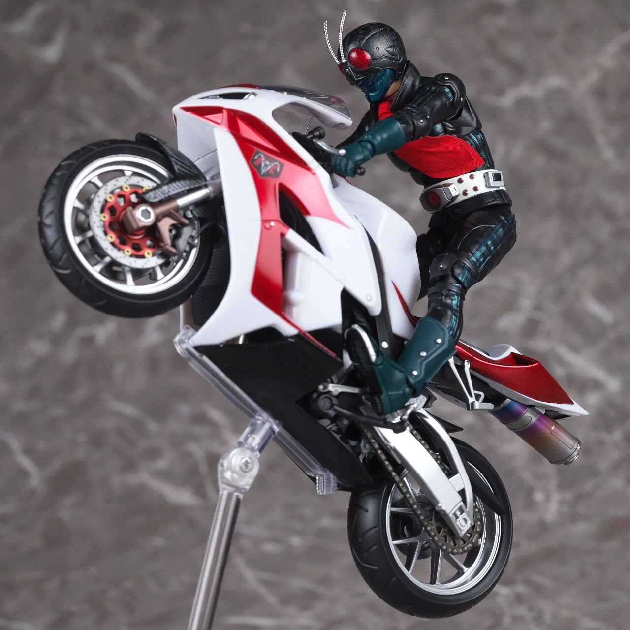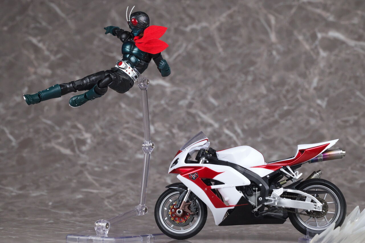 各部の形状など造り直されてより劇中に近くなってるようですが、バイクは元々の出来が良かったので1号本体ほどの差は無かったです。
