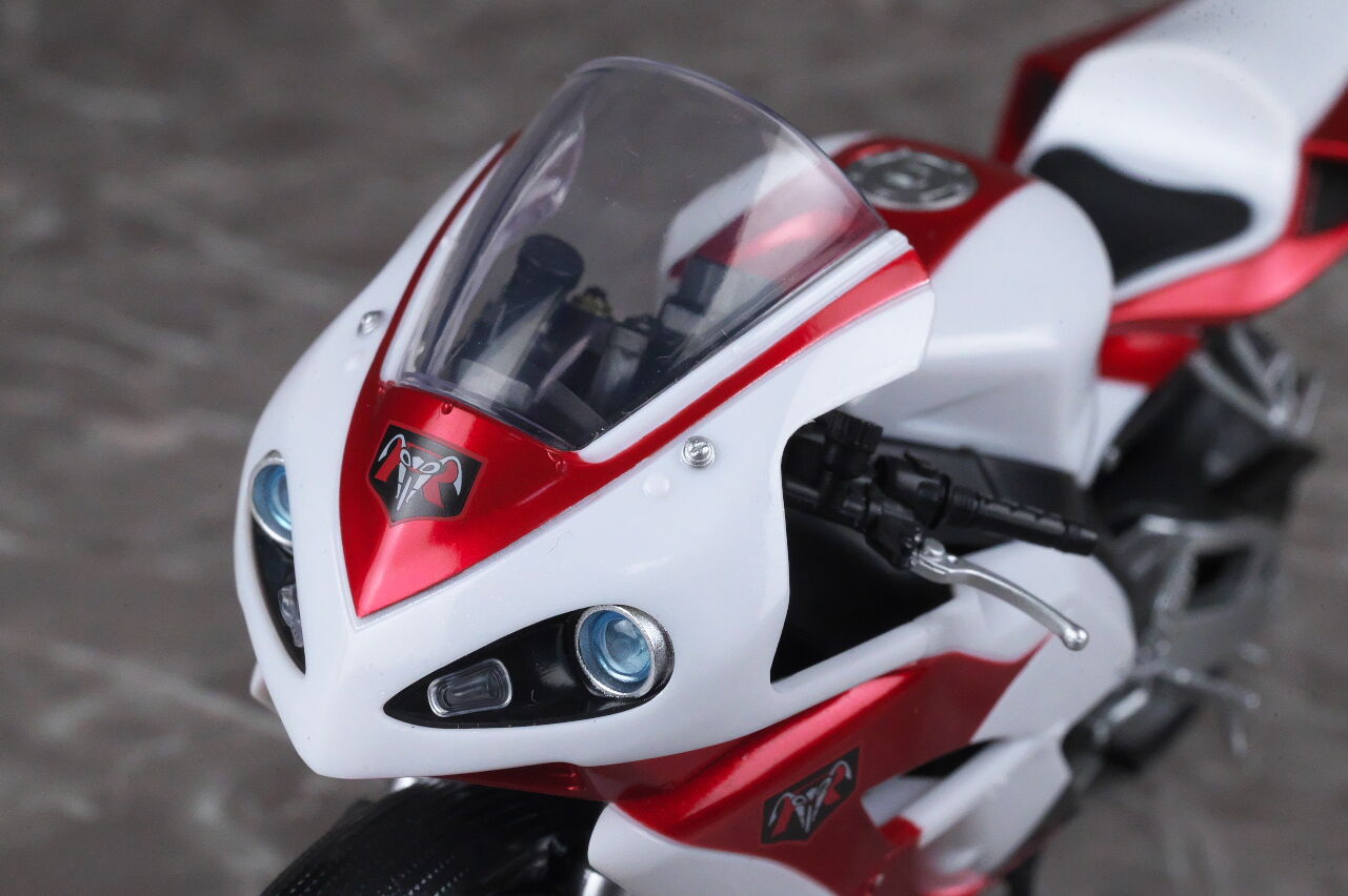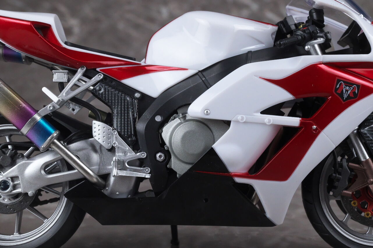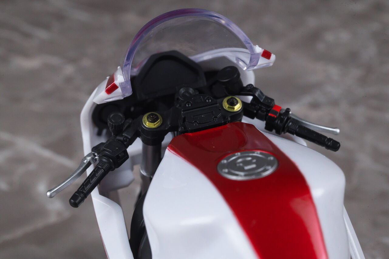 各部位など。フロントカウルは旧版よりも丸みを帯びたフォルムになり、ライトの周りなどもディテールアップ。クリアパーツの透明度も上がってました。