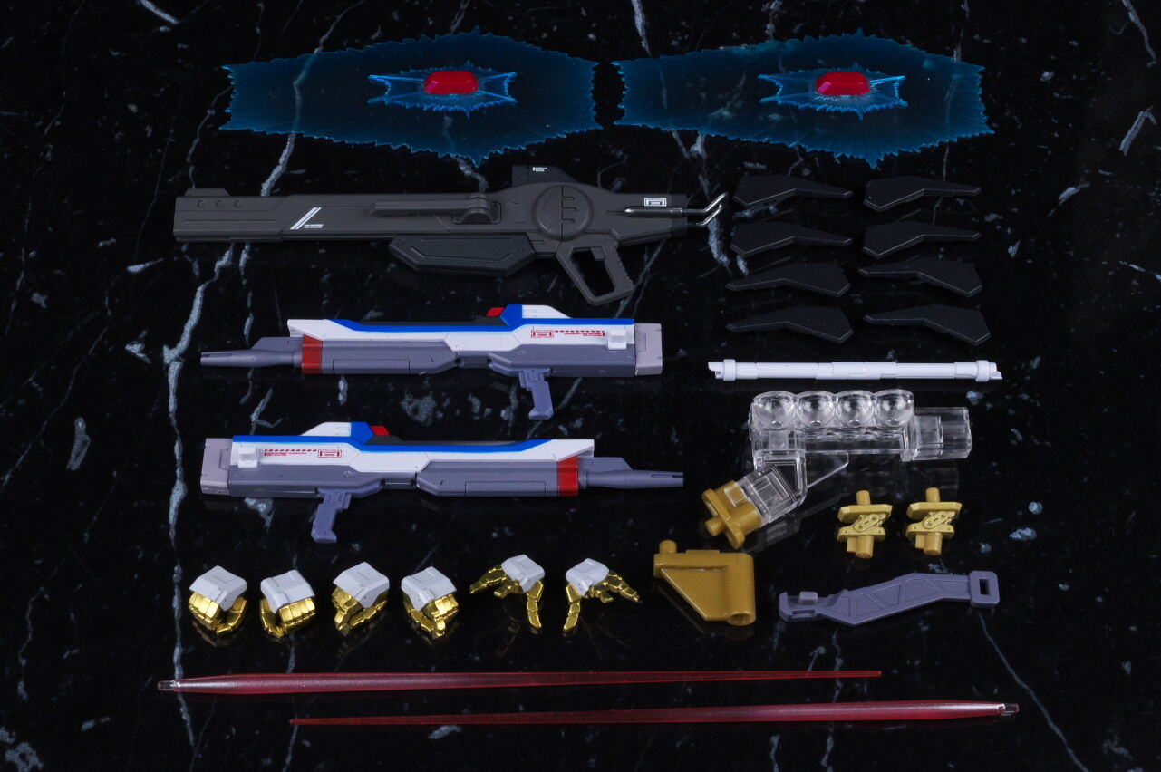 レールガン両手持ち。劇中ではしっかり二挺装備しており、他機体の余りも無いので二挺付けて欲しかったところ。