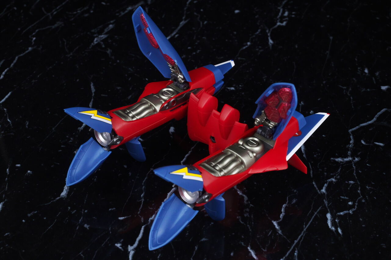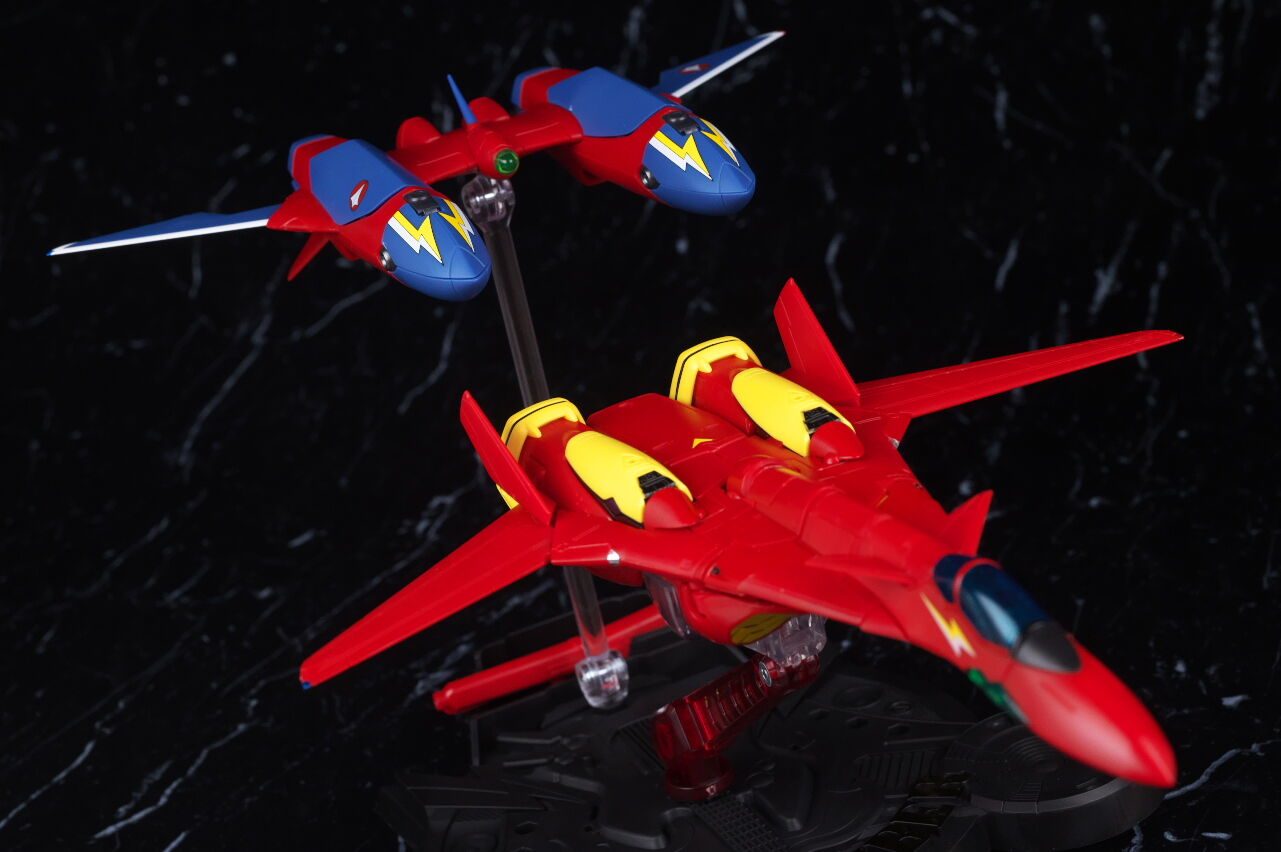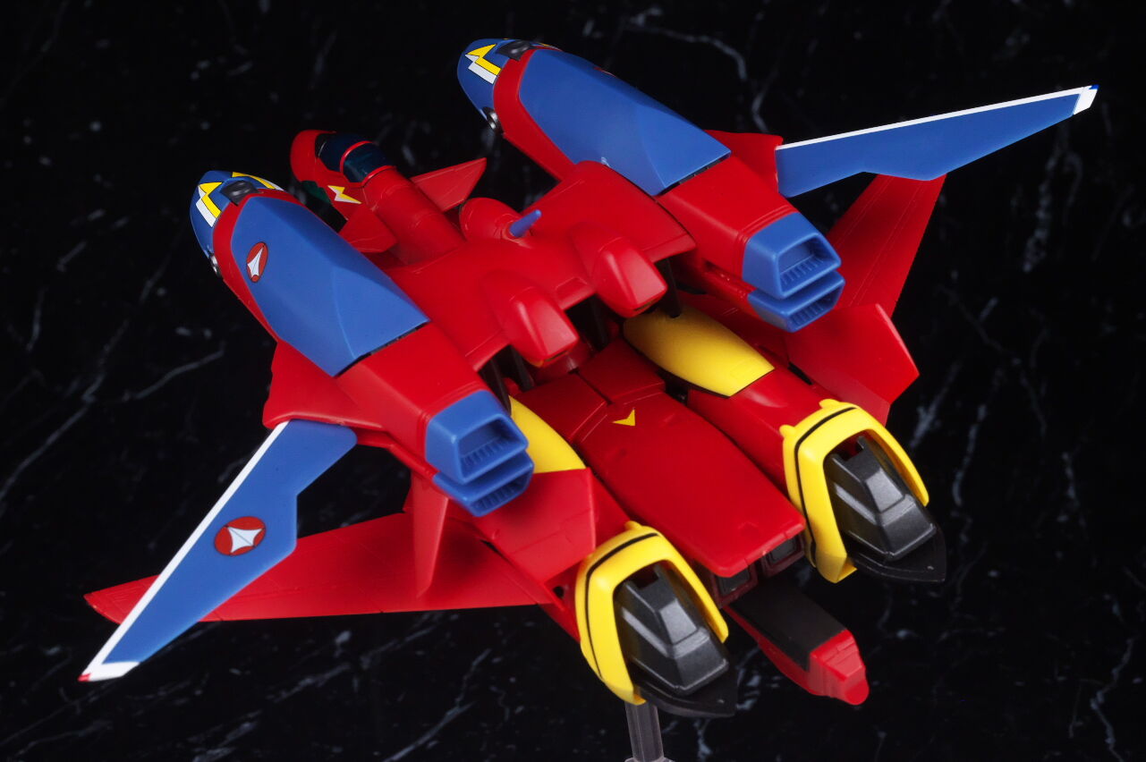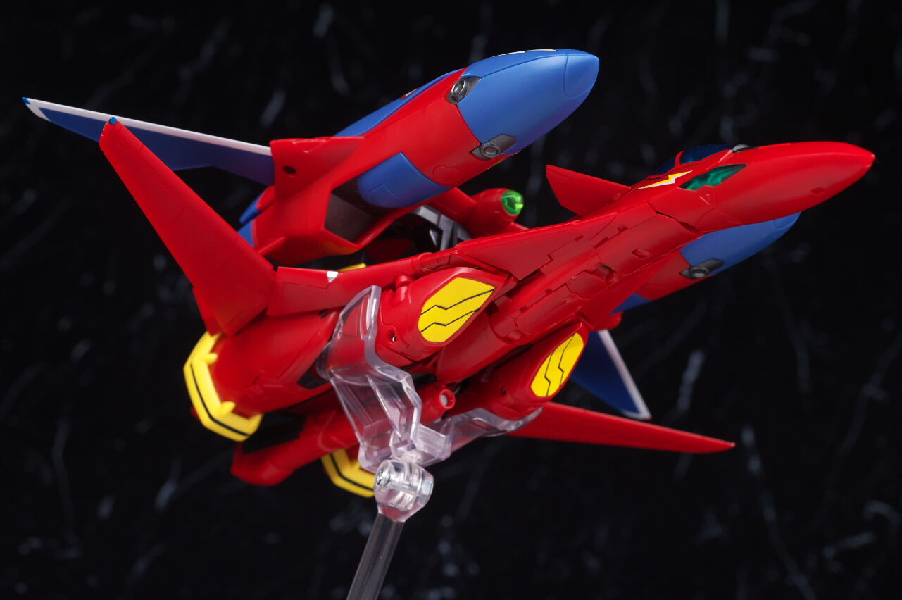 付属の台座で2機並べての展示が出来るので、合体させない状態でも見栄え良く飾ることが可能。