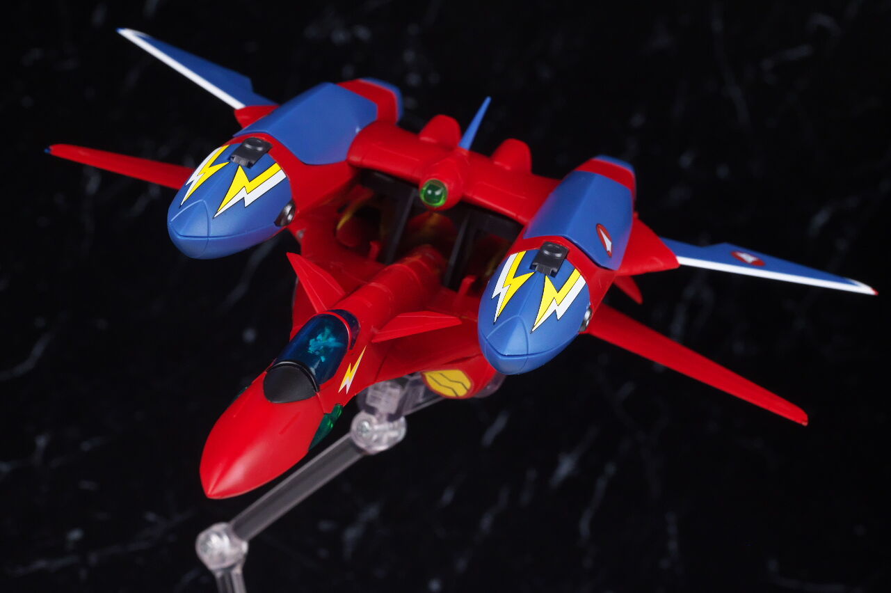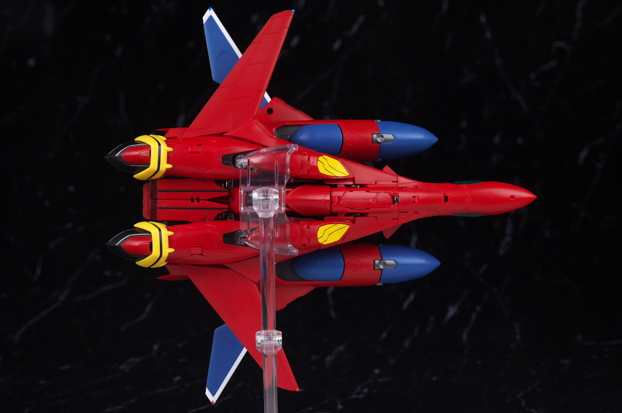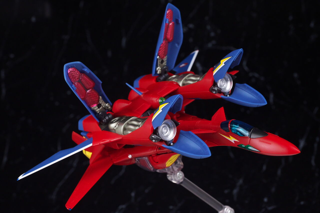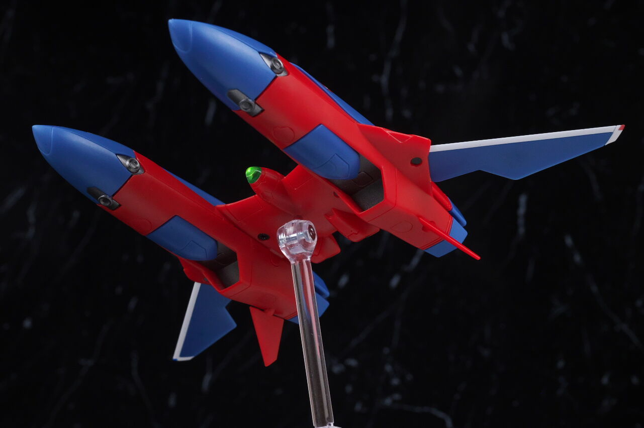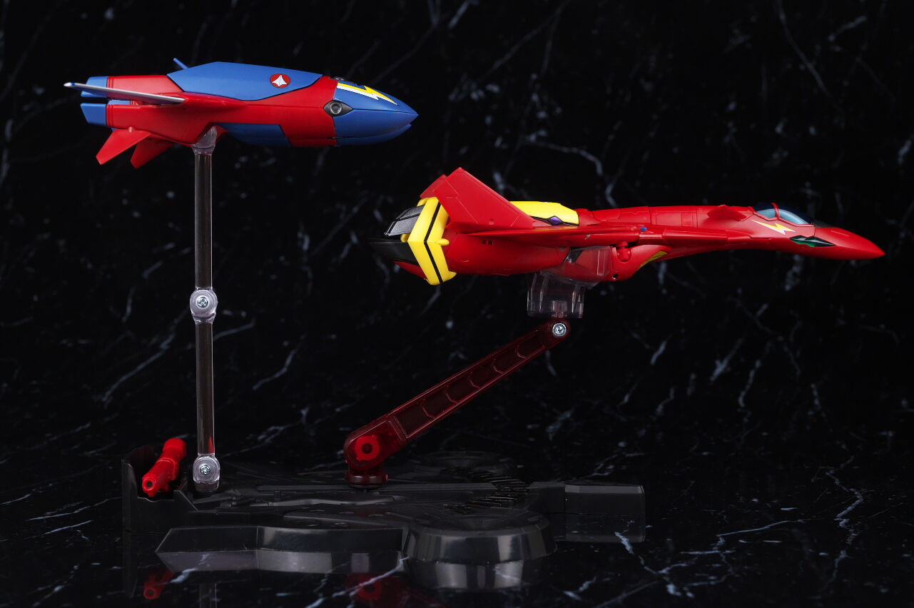 付属の台座で2機並べての展示が出来るので、合体させない状態でも見栄え良く飾ることが可能。