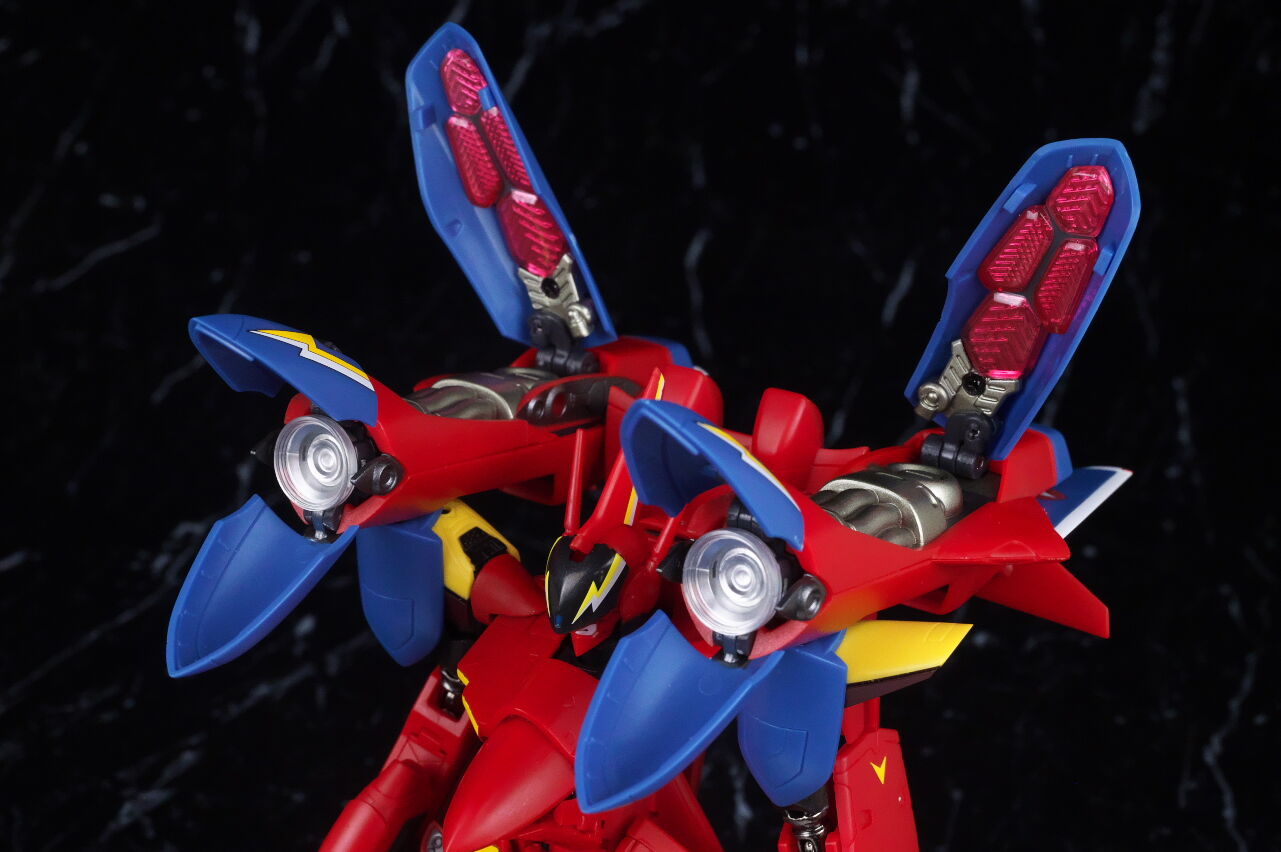 こちらもそこそこの価格なだけあって、しっかりとしたボリュームがあり、変形やスピーカー展開ギミックなどもきちんと再現されており、赤の色味も本体と統一されていて、塗装なども丁寧で堅実な出来に仕上がってました。