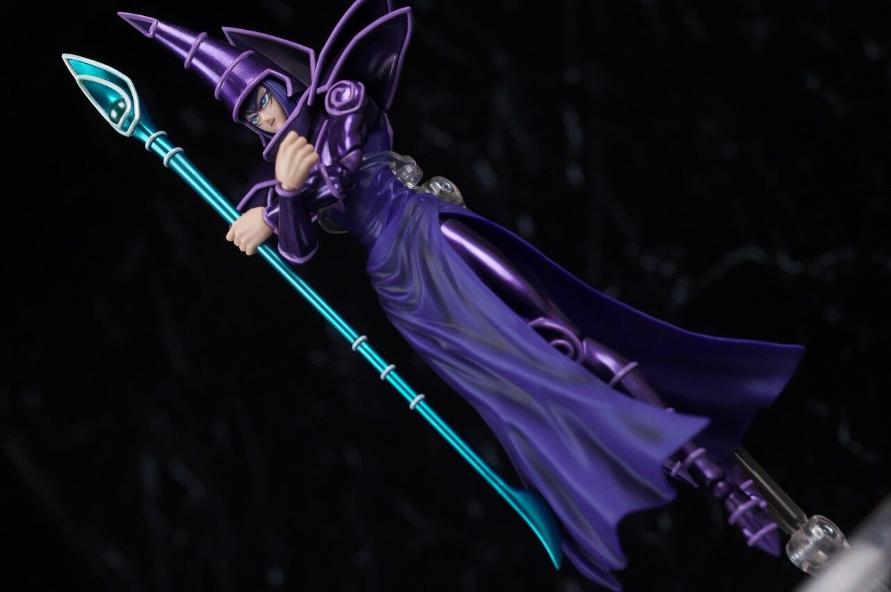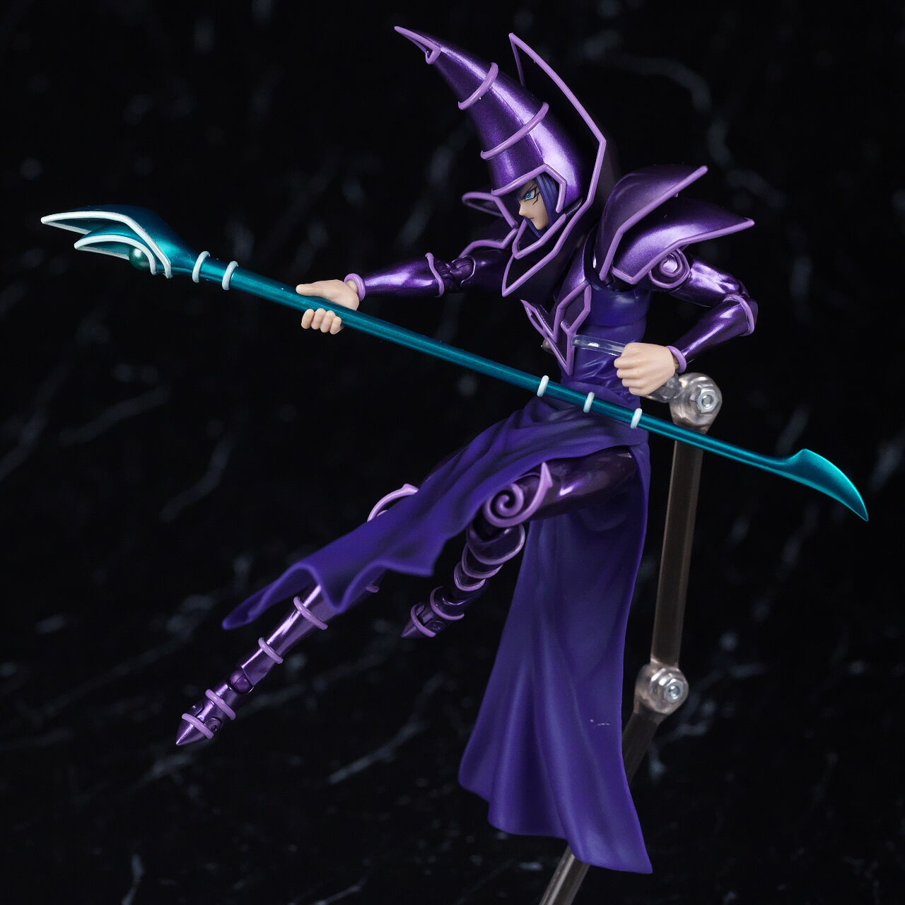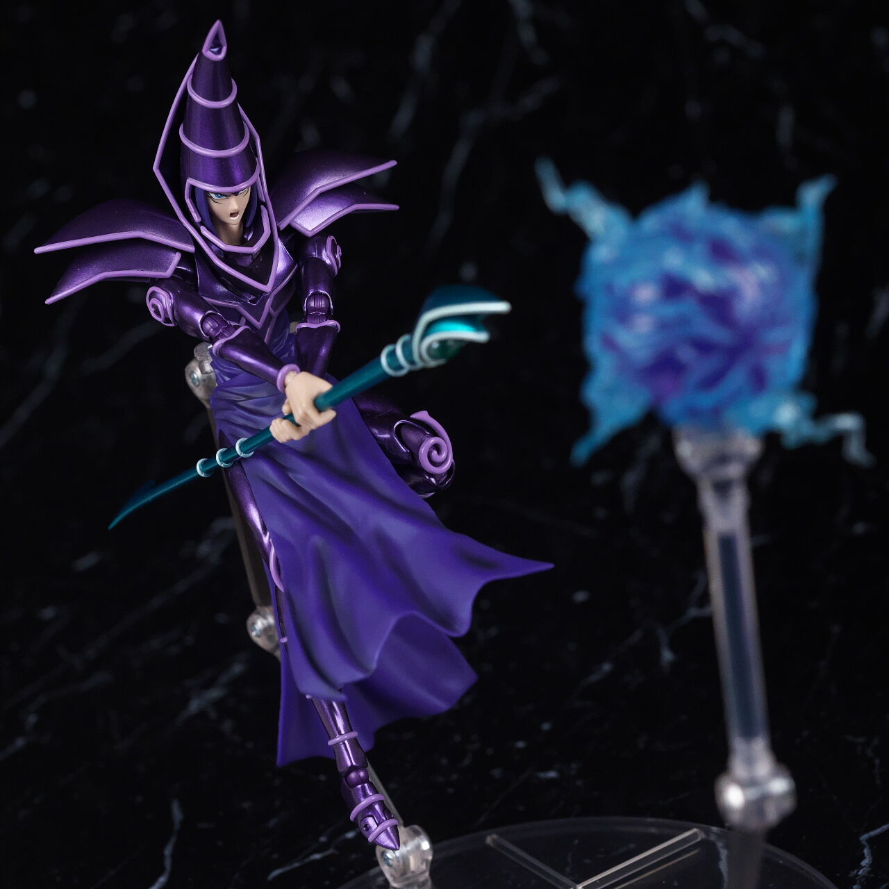 全身。普通の人型なのでSHFっぽいですが、同じ遊戯王の青眼の白龍などと同じモンアツでの発売。全高は約185mmと少し大きめで、細身な体型やローブのデザインなど忠実に再現。