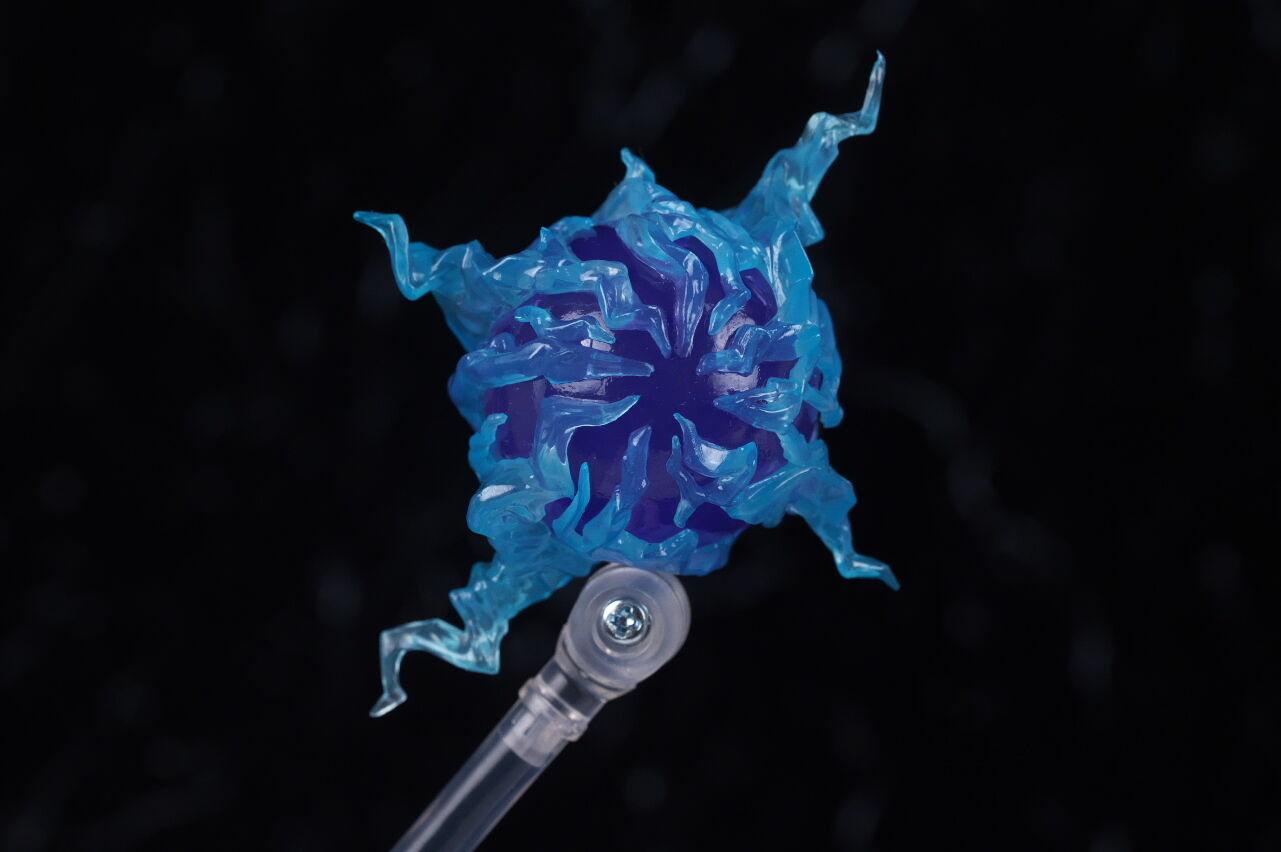 普通の人型なので作り的にはSHFとほぼ同じで、小顔で頭身の高いプロポーションや魔術師ローブなど原作のイメージ通り造形され、紫のメタリック塗装も丁寧に塗装されており見栄え良好、可動も肩の引き出し関節や軟質素材などかなり力が入ってる感じでよく動き、エフェクトなども凝っていて、完成度の高い出来に仕上がってました。