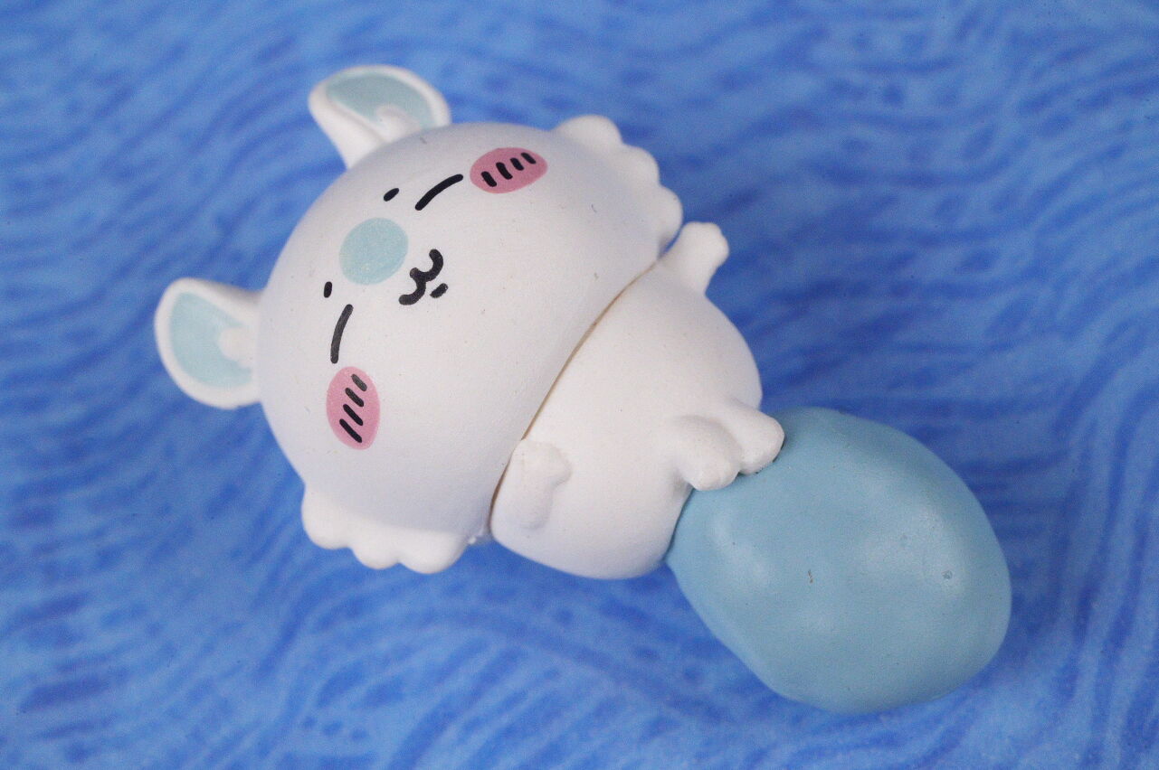 ちいかわは布団から起き上がり目覚まし時計を持ってウトウトした状態。サイズがかなり小さいので肉眼だとそこまで目立たないですが、左頬に汚れがあった点はちょっと残念。