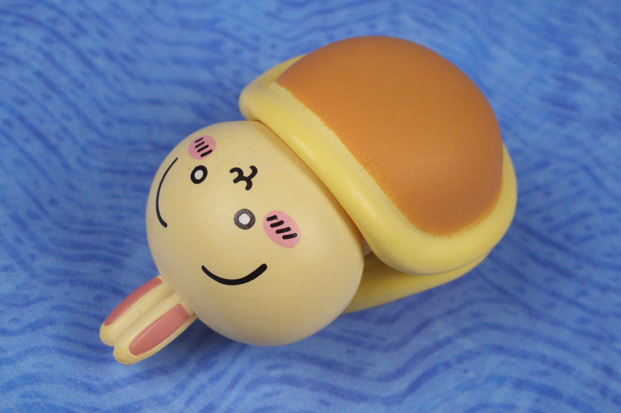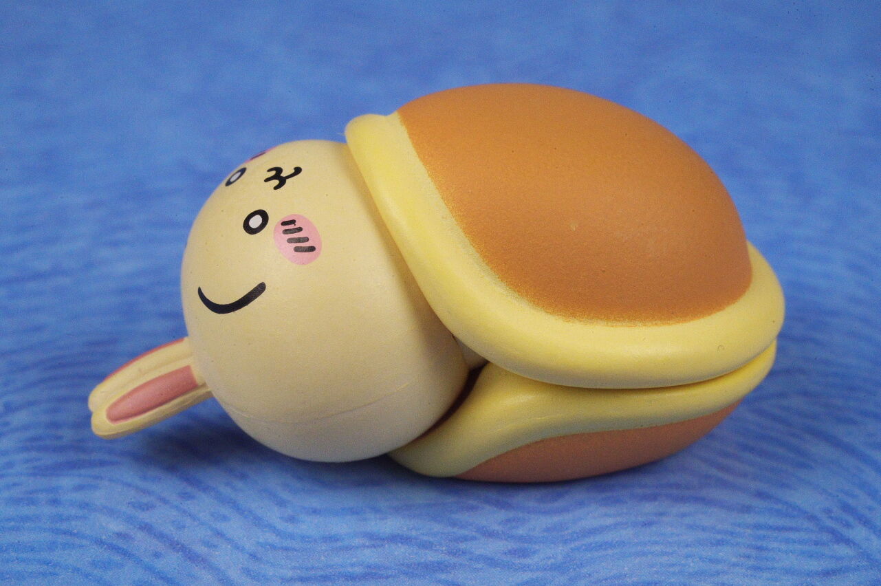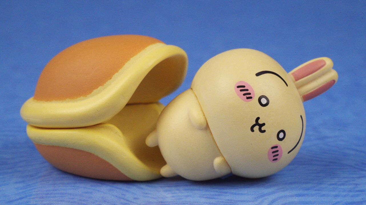 最近ちいかわのガチャガチャが多すぎるのもあって1弾の時は気づかずスルーしてましたが、今回の2弾は、どら焼きの布団で目を開けたまま眠るうさぎがインパクトがあって目に留まり購入。