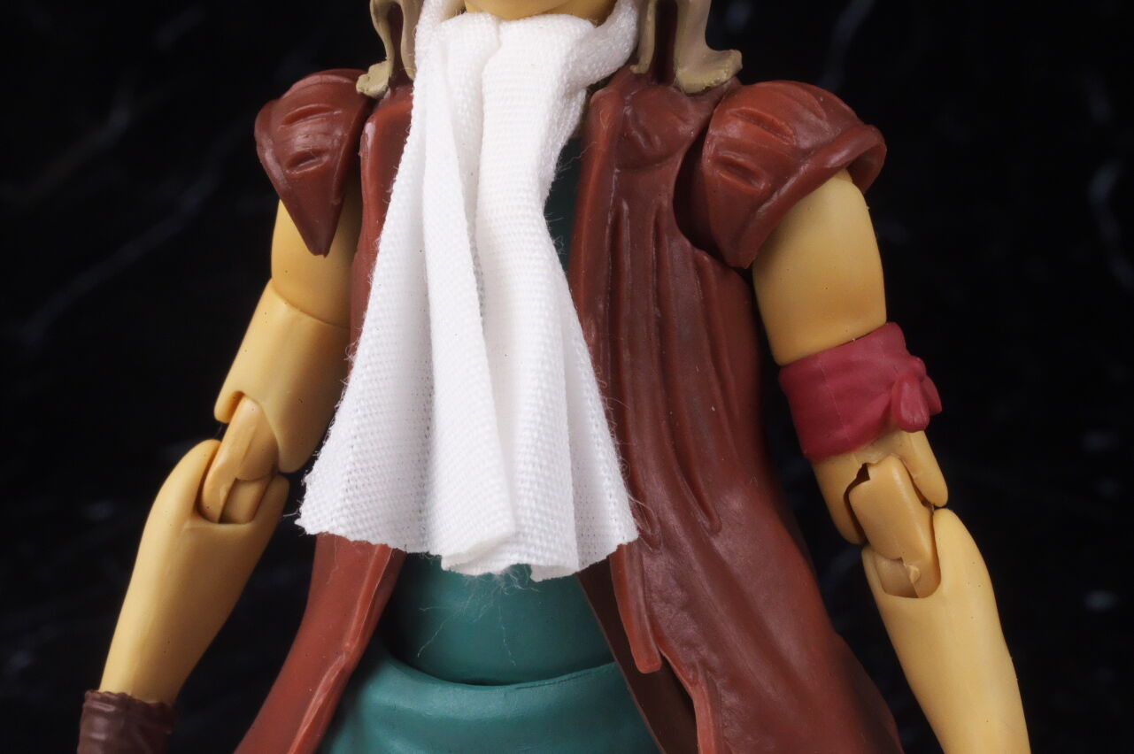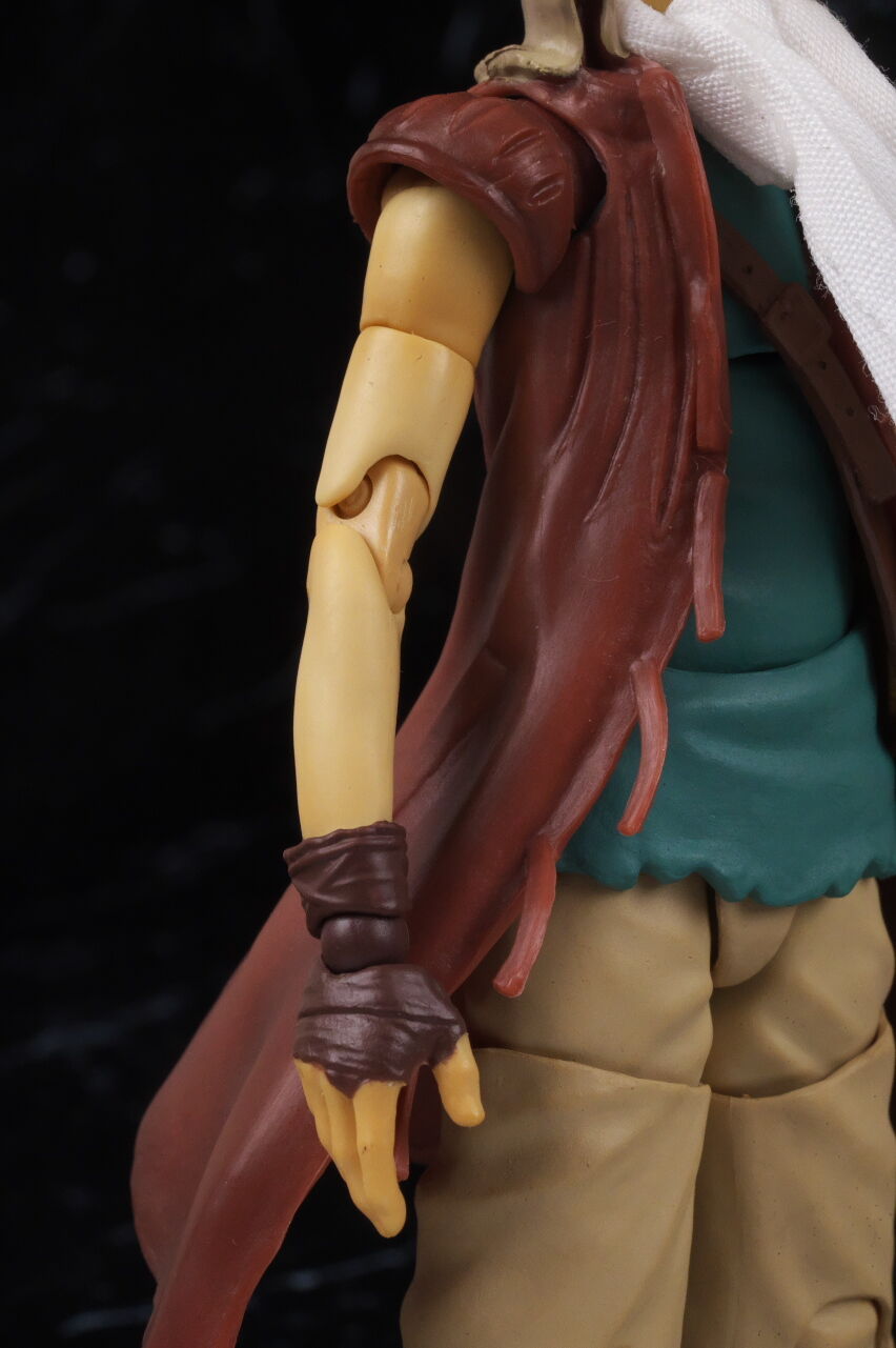 各部位など。細身な体型やかなり傷んだ上着なども作中通り再現。スカーフは布素材で、根元にワイヤーも入っていて動きをつけることが可能。