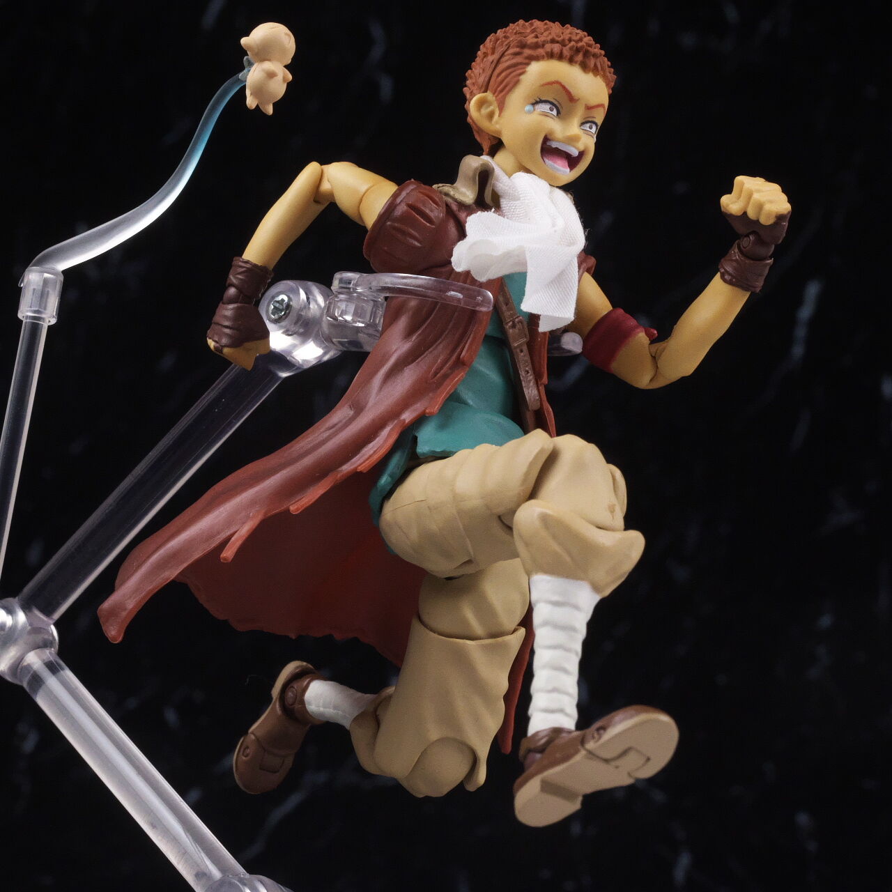 全身。シールケ同様子供キャラなのでサイズは小さめ。細身なプロポーションや肌の色など作中のイメージ通りで、スカーフは布素材になっているなど細部までこだわった作りに。
