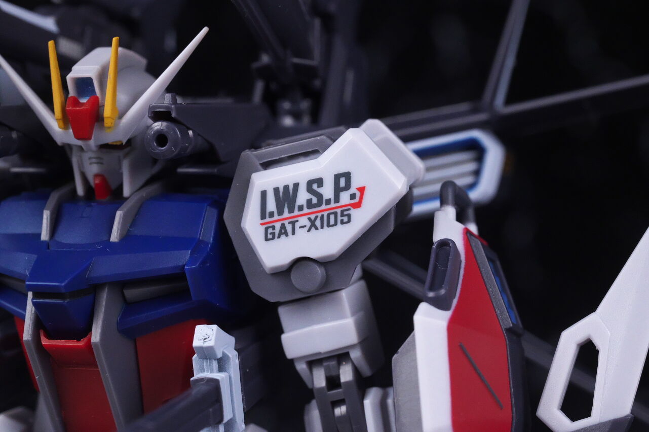 本体左肩にはIWSPのマーキング。格好良いですが、こちらが無ければ暗めのカラーリングの2体目のストライクとして使えたのでちょっと複雑な印象。