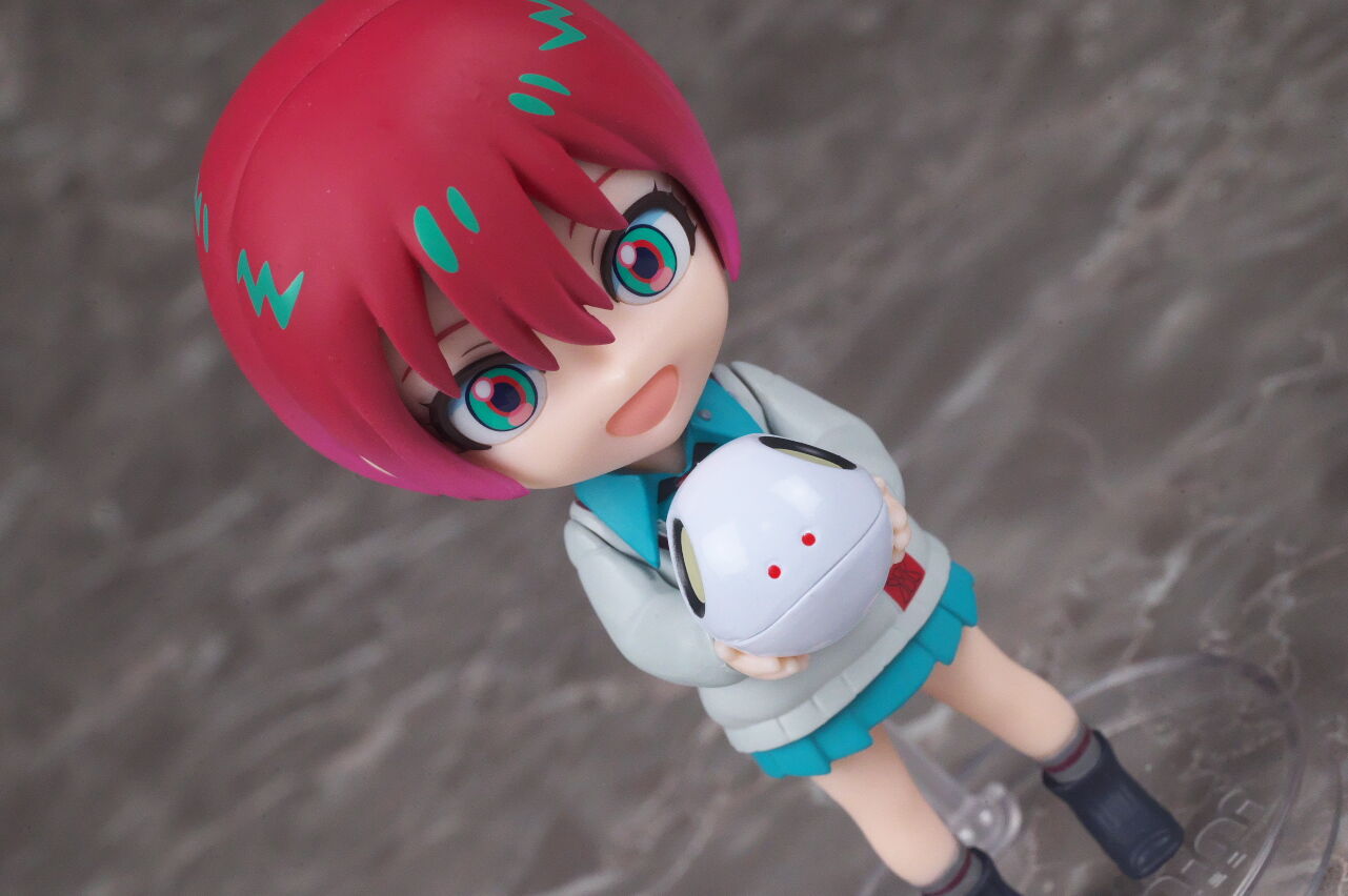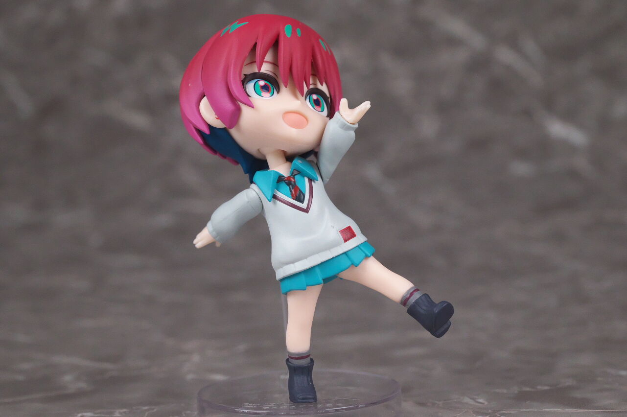 浅黒い肌や長めの前髪、猫っぽい瞳など忠実に再現。デフォルメながら制服や靴のディテールなども精密に再現されてました。