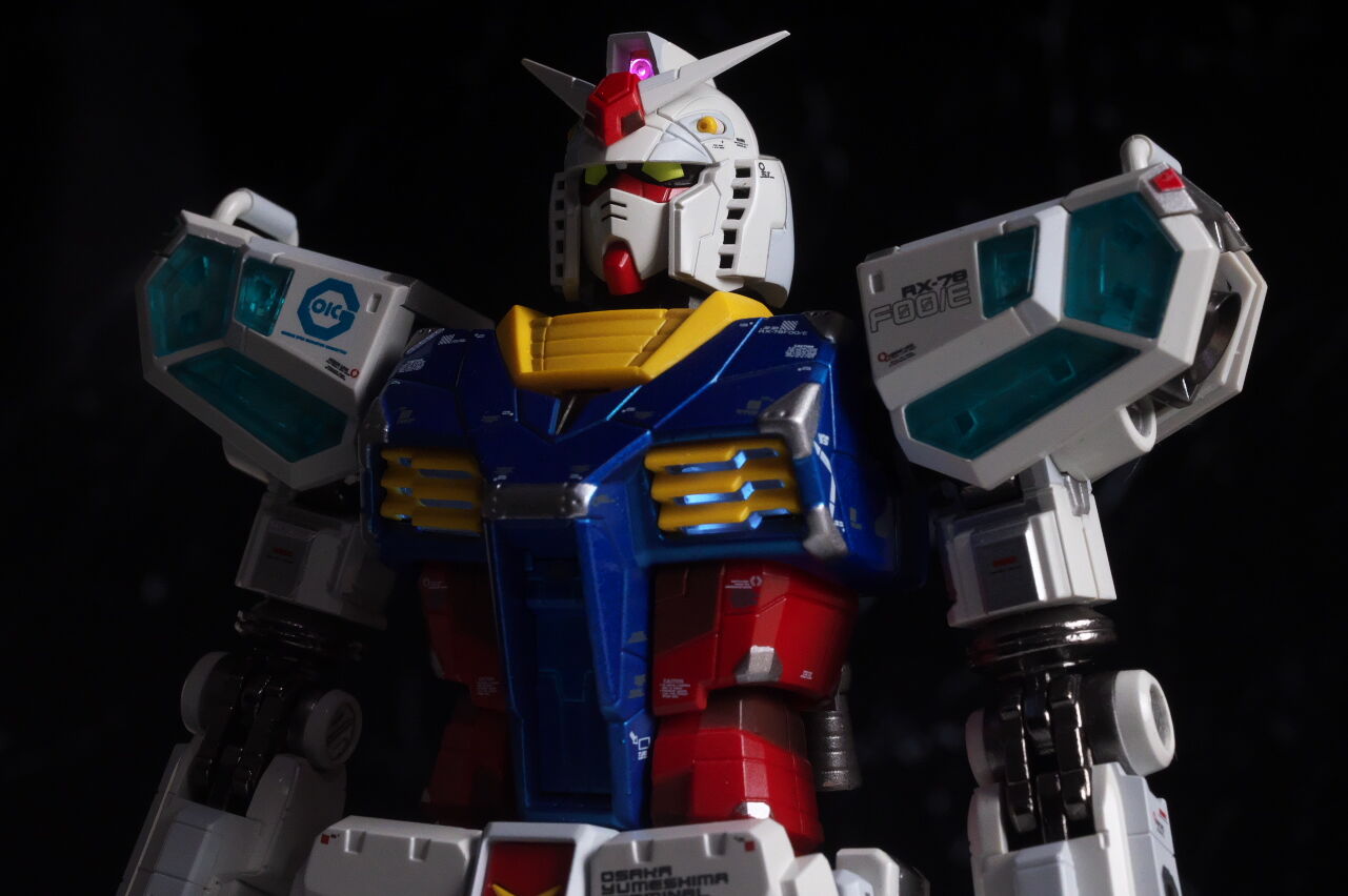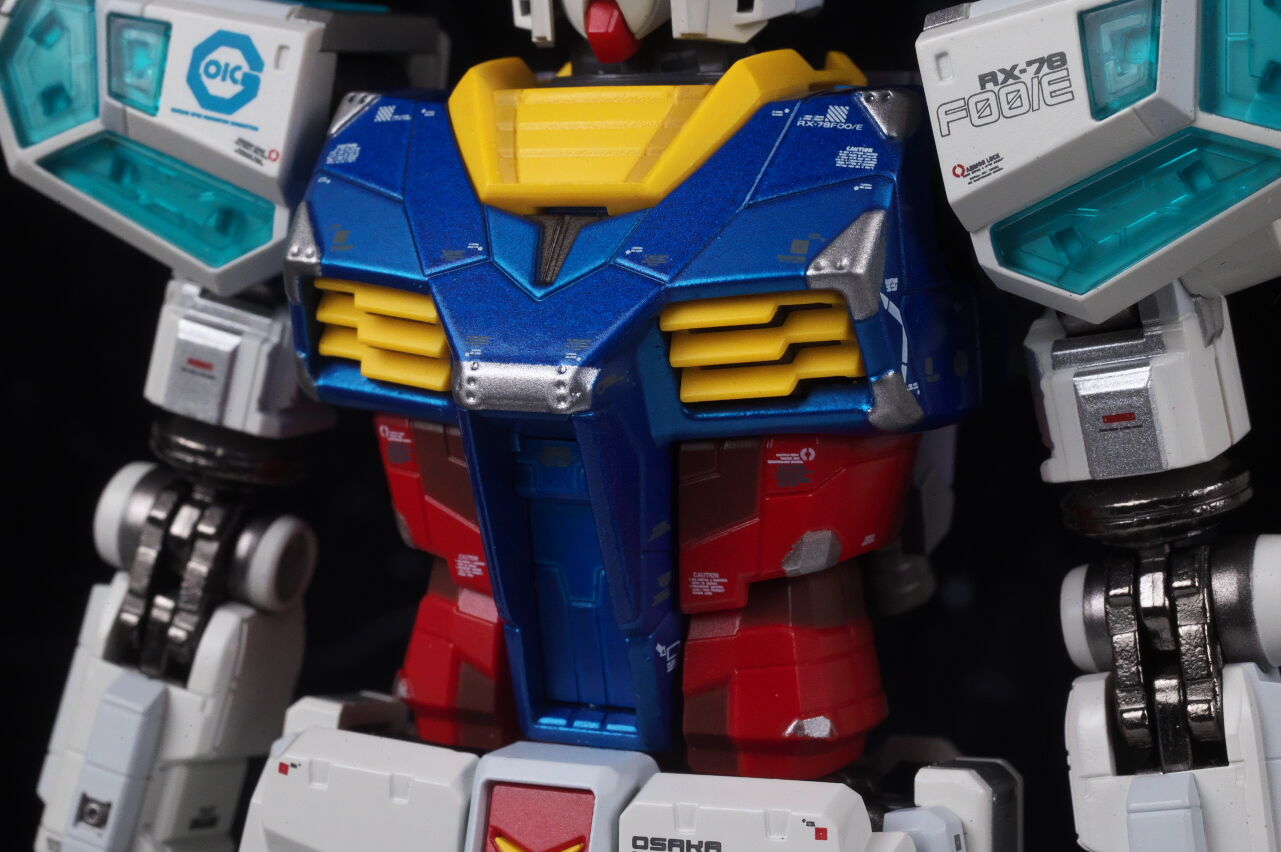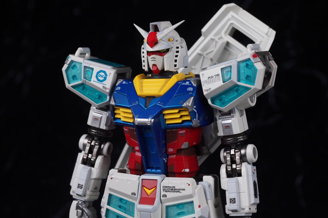 一部元となっている横浜のRX-78F00ガンダムからの流用はあるものの、大半の部分は新規造形で各部にパネルがある万博ガンダムの独特なデザインが再現されており、また超合金のRX-78F00同様メタルビルド的なアレンジや塗装も引き継いでおり、なかなかの格好良さに仕上がってました。